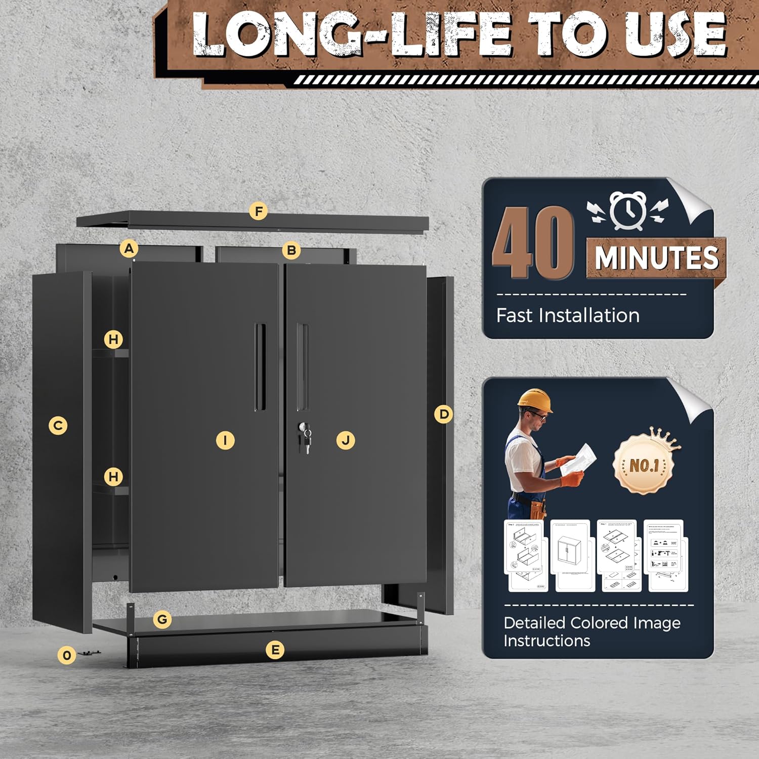 • 『EASY TO ASSEMBLING』42 inch×36 inch×18 inch (H x W x D). 2 wing doors with a 180°opening angle. The garage storage cabinets is knock-down structure. The package comes with detailed assembly instructions, easy to assemble.