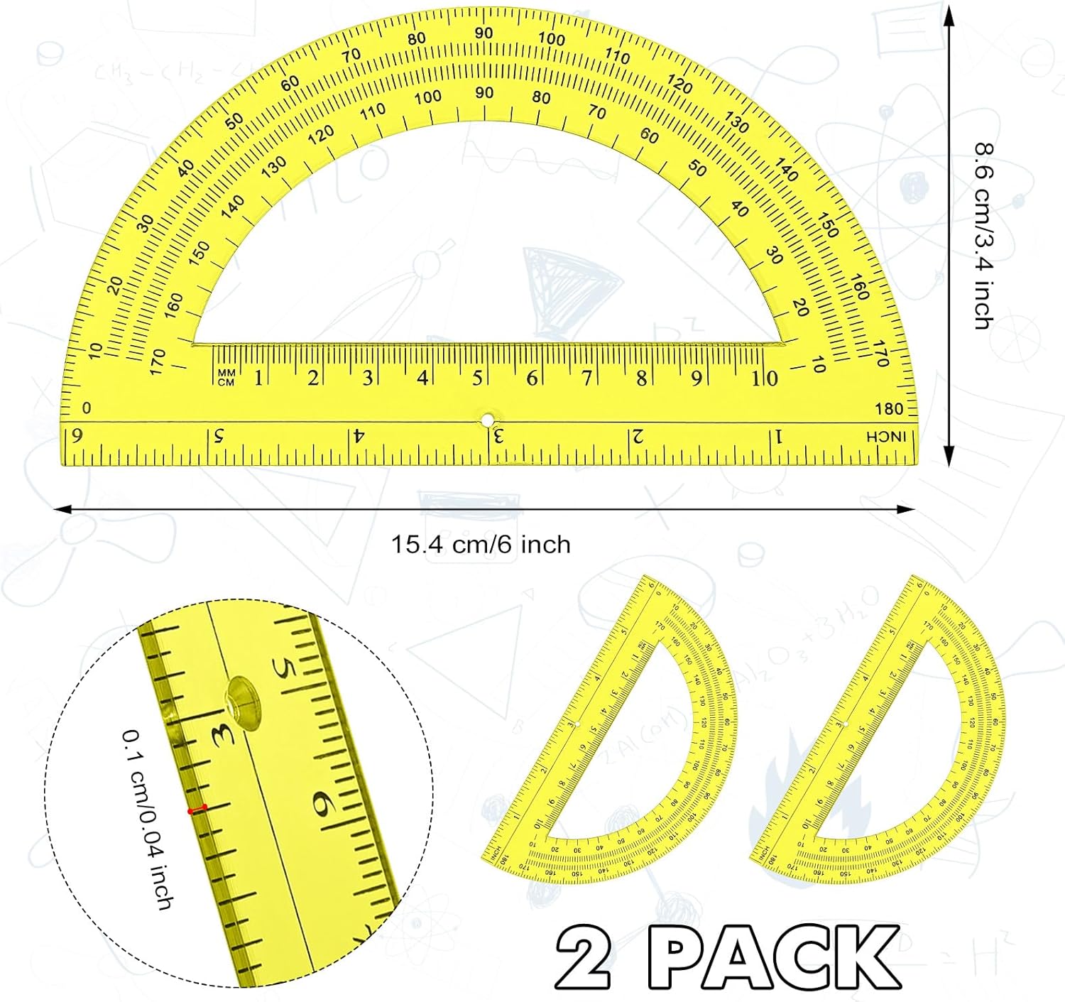 Zonon 2 Pcs 6 Inch Plastic Protractor Math Protractors 180 Degrees Angle Measurement, Translucent for Geometry Classroom Kid Student School Office Supplies(Yellow)