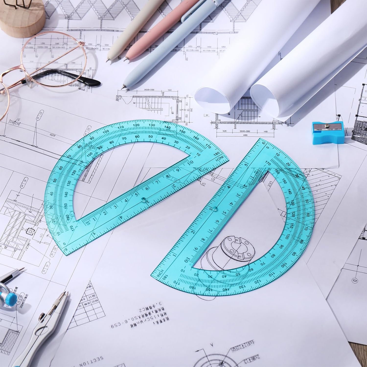 Zonon 2 Pcs 6 Inch Plastic Protractor Math Protractors 180 Degrees Angle Measurement, Translucent for Geometry Classroom Kid Student School Office Supplies(Blue)