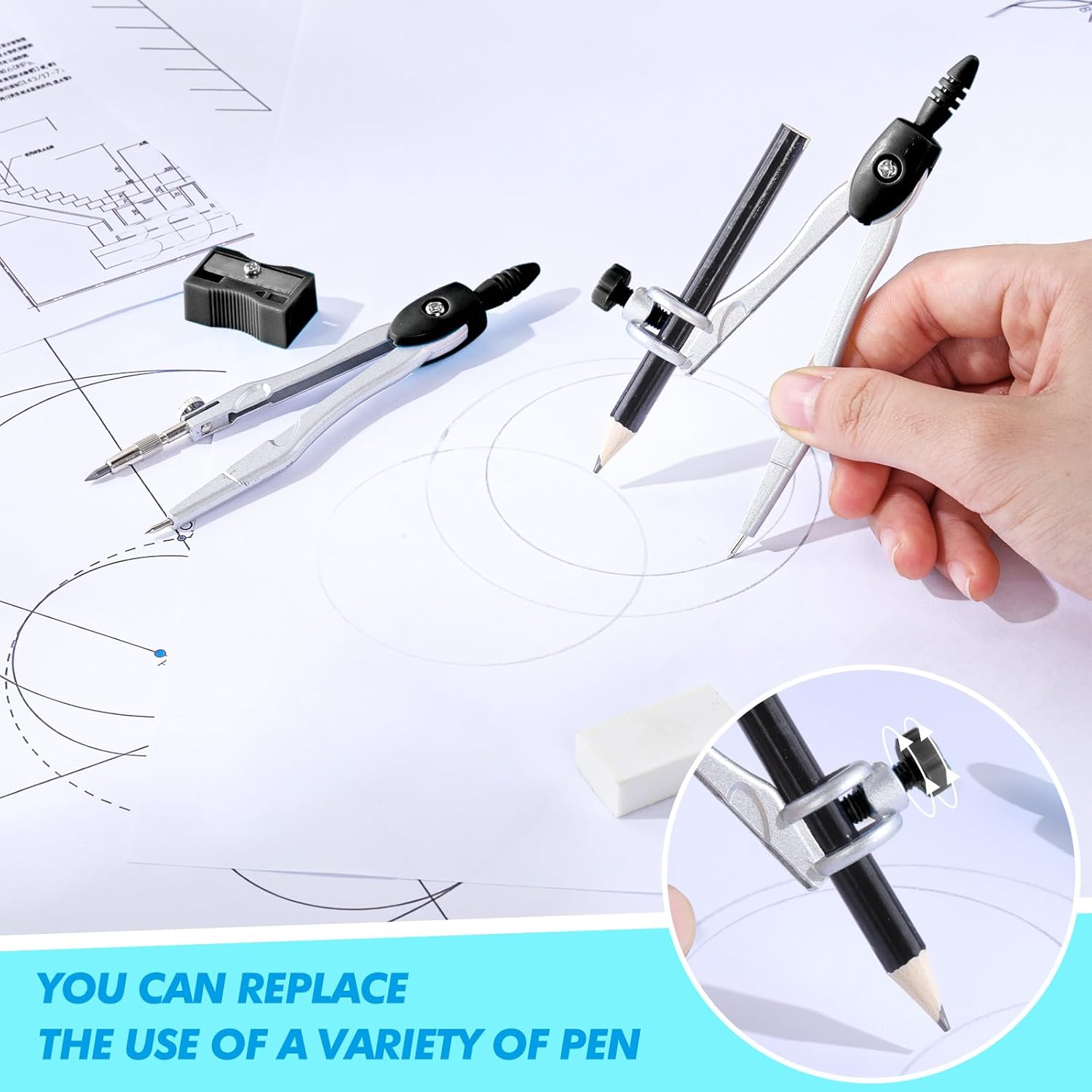 • Package Includes: the geometry set includes 2 compasses, 2 triangles, 1 ruler, 1 protractor and 1 pencil, 1 eraser, 1 sharpener, and 1 box of pencil lead refill, ensuring that you have all the tools you need for precise geometry calculations