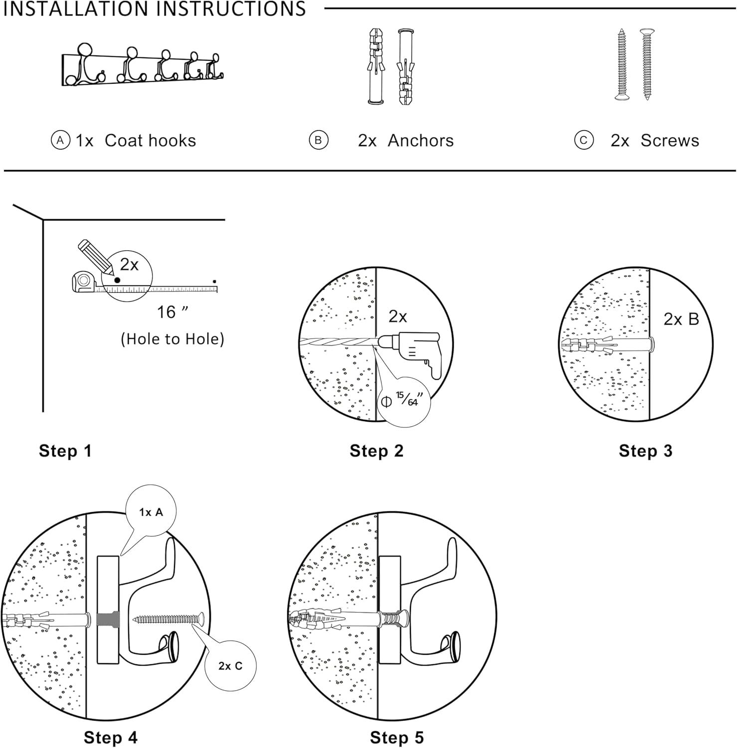 • 【Sturdiness & Large spacing】Solid wall mount coat rack with 5 triple hooks, hang 5 or 10 jackets per rack. Plenty of space to support clothes, bags, and pet supplies, making it perfect for family.