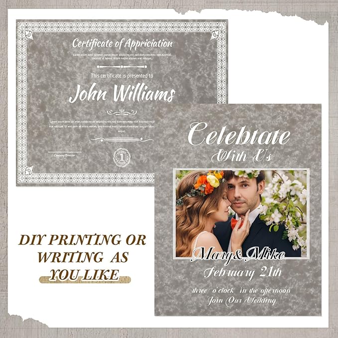 • Work As Different Things: these plain certificate papers are flexible in use, you can use them as certificate printing, wedding invitation, birthday invitation, restaurant menu, theme party decoration and so on, running smoothly in laser and inkjet printers, copiers and offset applications without jams