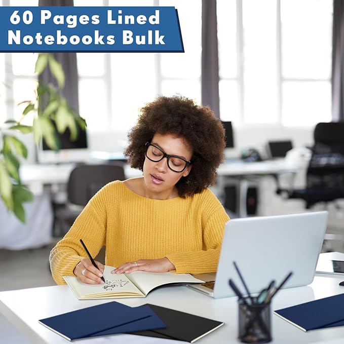 Mimorou 100 Pcs Kraft Notebook Journals 5.5 Inch x 8.3 Inch A5 Softcover Notebooks Bulk for Writing Sketch Office Notepad with 60 Pages 30 Sheets(Black, Navy,Lined)