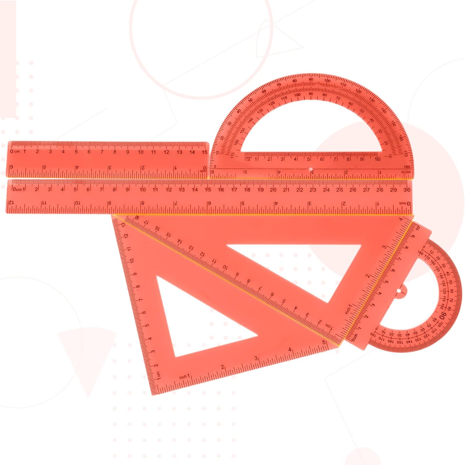 • Quality material: the orange clear protractor ruler set is made of quality plastic, durable and sturdy, not easy to break and crack, with a certain thickness controlled, can serve yo for a long time; A practical measuring tool for designers, architects, engineers, students and so on