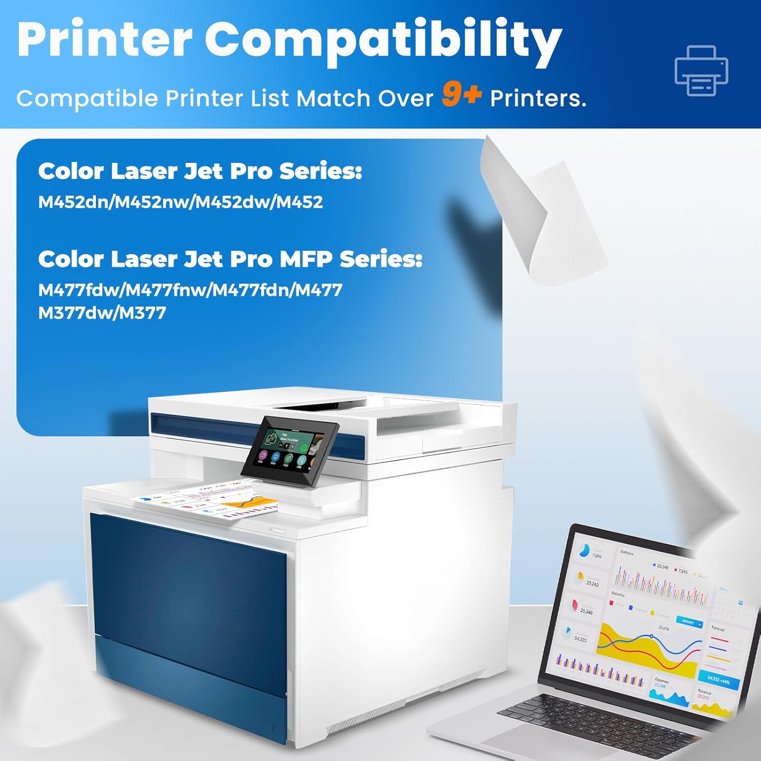 • Match Multiple Printers: 410A 410X toner are compatible with HP Color Laser jet Pro MFP M377dw, M477fdn, M477fdw, M477fnw, Laser Jet Pro M452dn, M452dw, M452nw printer