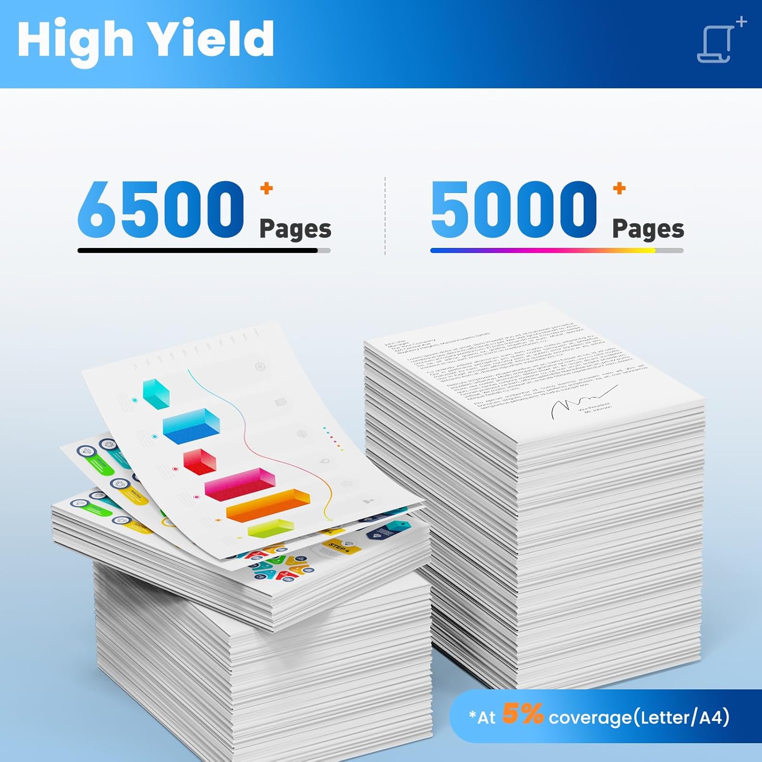 • 410X Toner Cartridge Yield (approx.): 410X toner cartridges 4 pack high yield up to 6,500 pages per 410A black toner cartridge, 5,000 pages per 410A color toner cartridge (Letter/A4, at 5% Coverage)