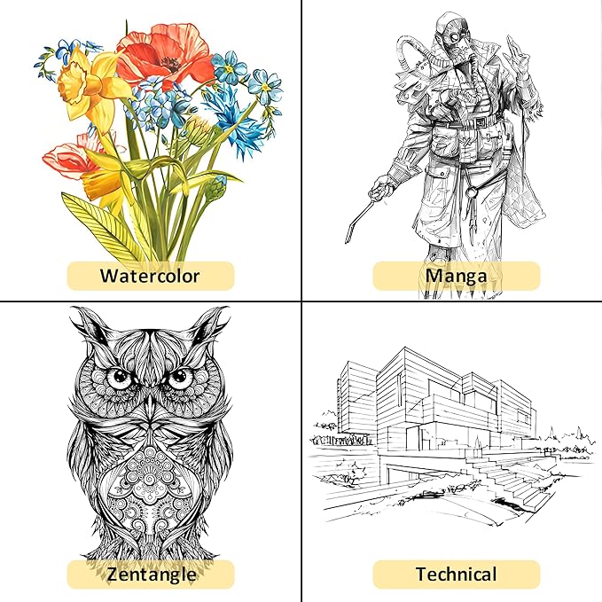• Compatible with Watercolor, Markers & More: Use XWT art pens before or after watercolor, colored pencils, markers, or acrylics. The ink won’t smear once dry. Perfect for bullet journaling, manga, comic drawing, Zentangle, sketching, outlining, and architectural illustration.
