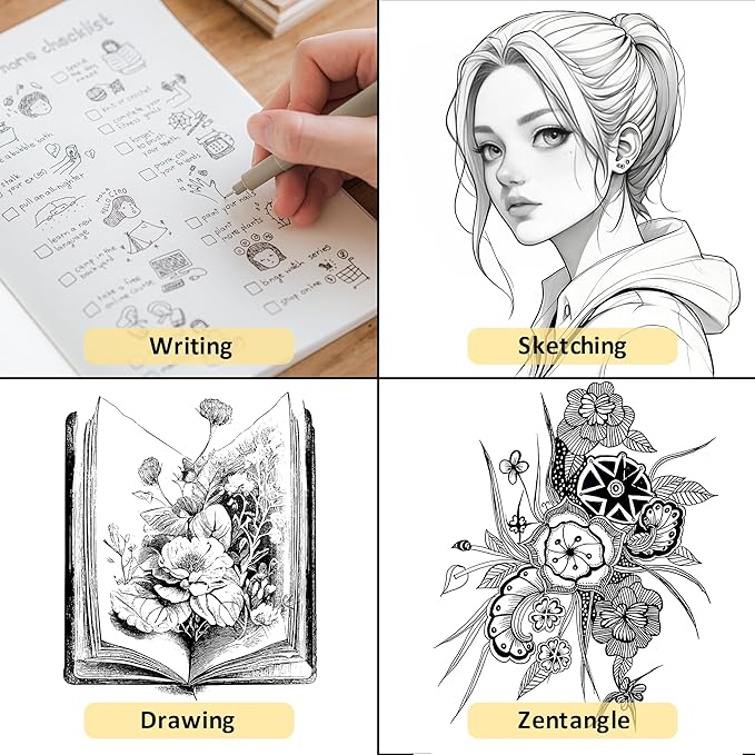 • Archival-Quality Pigment Ink – Waterproof & Fade-Resistant:XWT fineliner pens use rich black water-based pigment ink that is quick-drying, waterproof, sunproof, acid-free, and non-toxic. No smearing, ghosting, or bleeding through paper – ideal for long-lasting artworks, technical drawings, and note-taking.