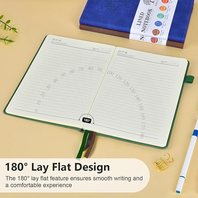 • 【180° LAY FLAT DESIGN & PREMIUM LINED PAPER】: Lay the notebook completely flat for easy writing in any setting—whether at your desk, in a café, or on the go. The 160 pages of 100 GSM lined paper (7mm spacing) offer a smooth writing experience, ideal for journals, work notes, school assignments, or Bible study notes, with minimal ink bleeding or feathering.