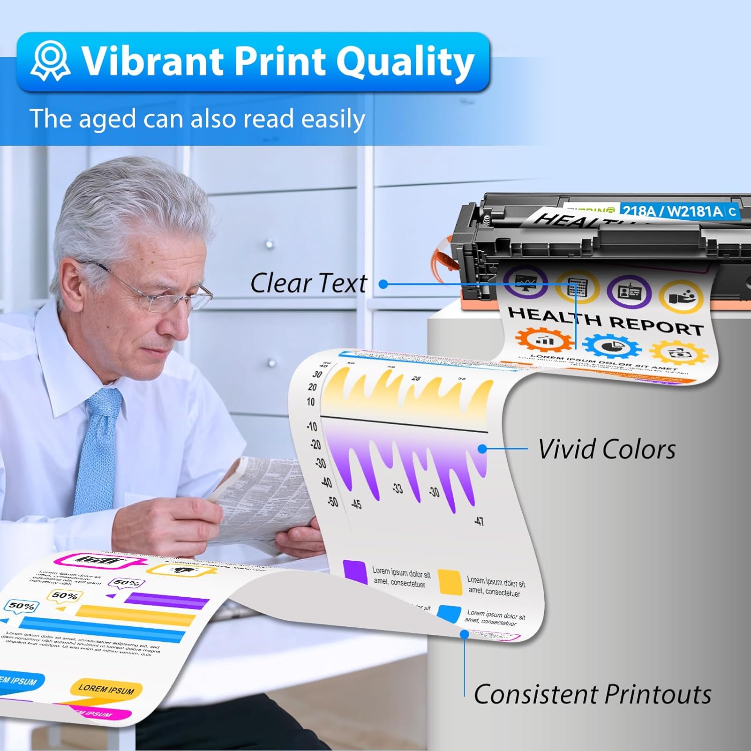 • [Vibrant Print Quality] Replacement for HP 218a toner cartridges 4 pack - enhance productivity for office reports/contracts, create vibrant photos/files for home users, support school assignments finish and boost higher score for students.Simplify tasks for all