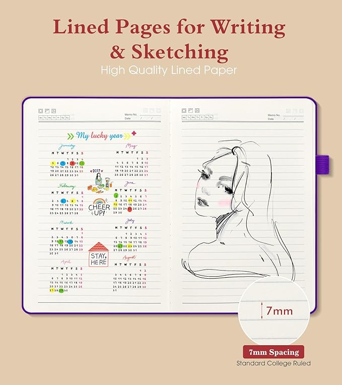 • 【180° Lay-Flat Binding for Effortless Writing】:The journal’s lay-flat design allows full-page access, making writing, reading, or note-taking comfortable for both left- and right-handed users. No more curled pages—perfect for extended writing sessions in meetings, classes, or while traveling.