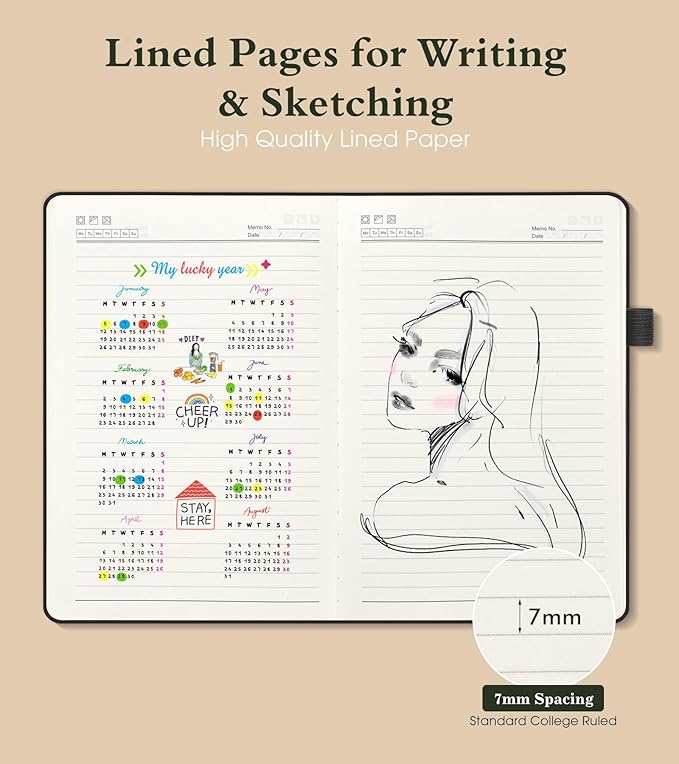 • 【180° Lay-Flat Binding for Effortless Writing】:The journal’s lay-flat design allows full-page access, making writing, reading, or note-taking comfortable for both left- and right-handed users. No more curled pages—perfect for extended writing sessions in meetings, classes, or while traveling.
