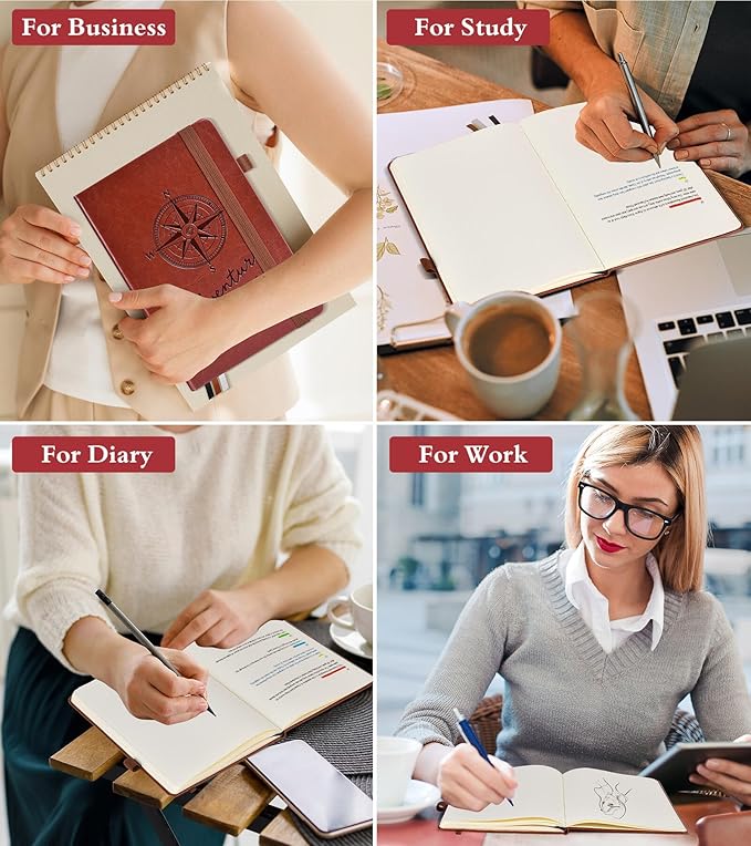 • 【Ideal Gift & 4 Page Style Options】:This leather bound journal makes a thoughtful gift for women, men, teens, and writers.Choose from 4 inner page styles: dotted (bullet journals), graph (sketches), blank (freeform), or ruled (structured notes). Perfect for birthdays, holidays, or personal use.