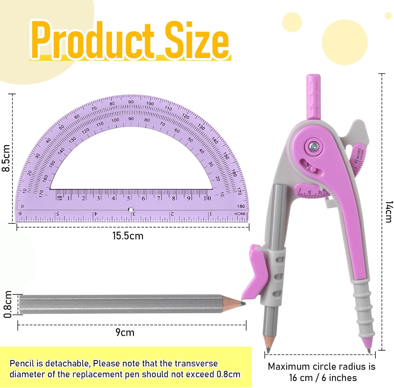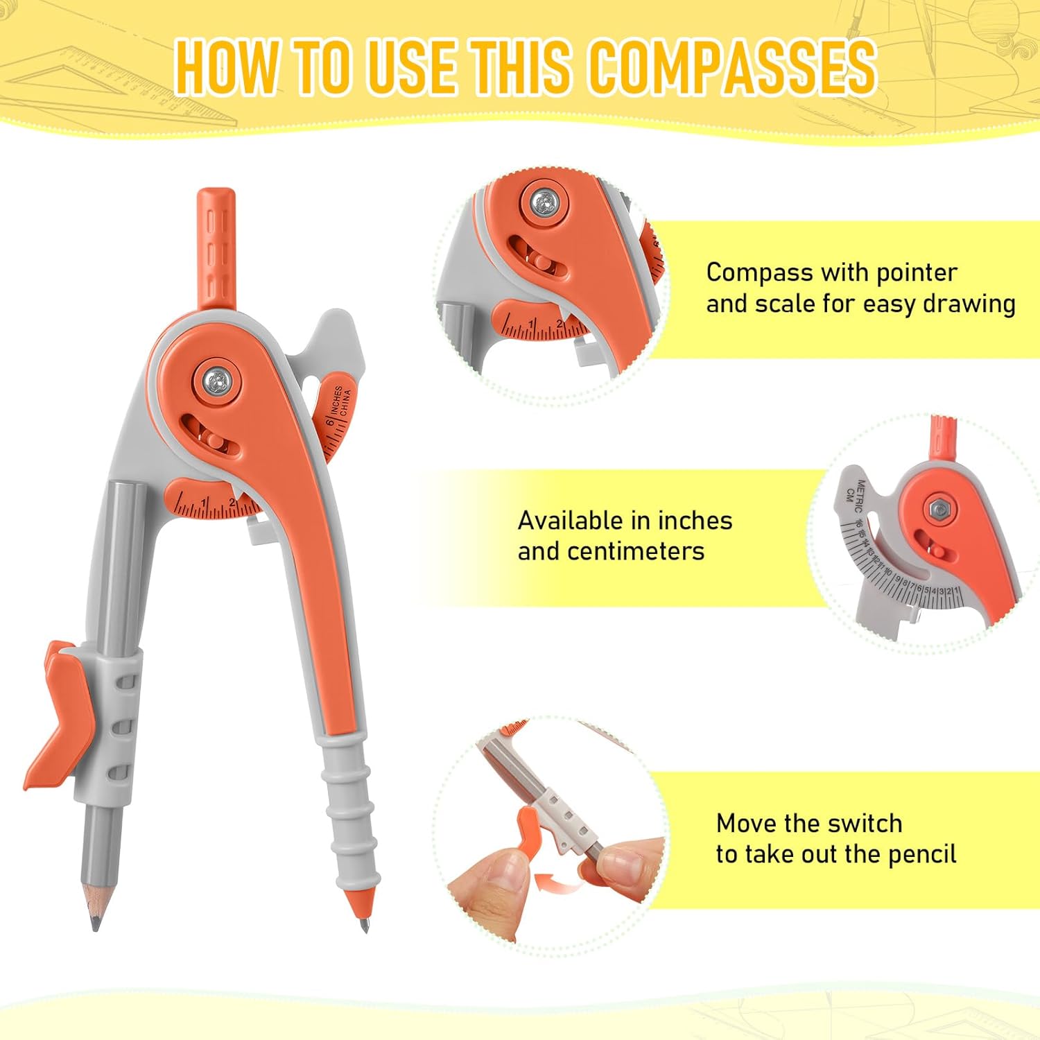 • Reliable Material: these math compasses for geometry are made of tough ABS plastic, safe and lightweight, ensuring they will withstand daily use and last for a long time; The sturdy construction also ensures accurate measurements and precise drawing every time, making them an ideal choice for geometry and math lessons