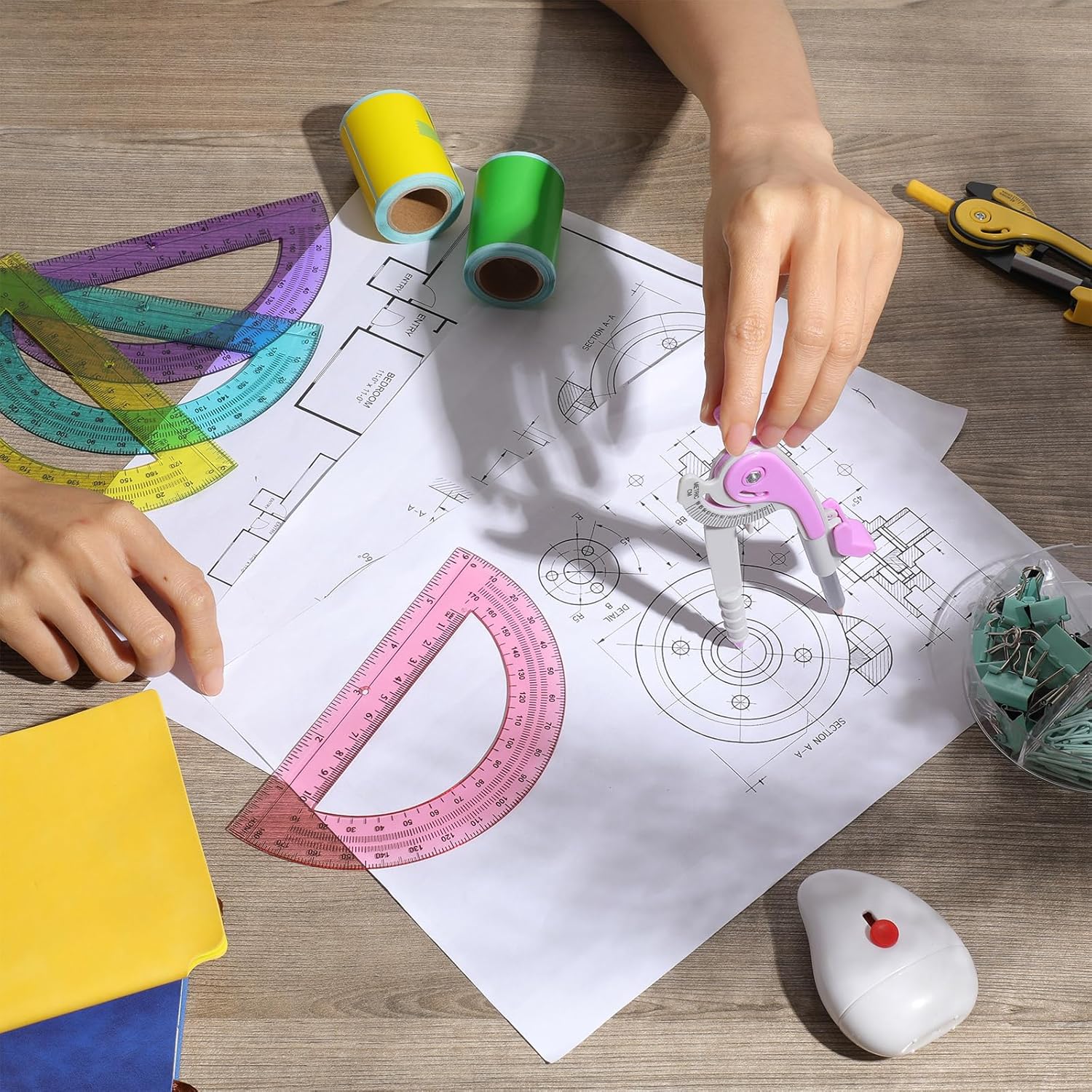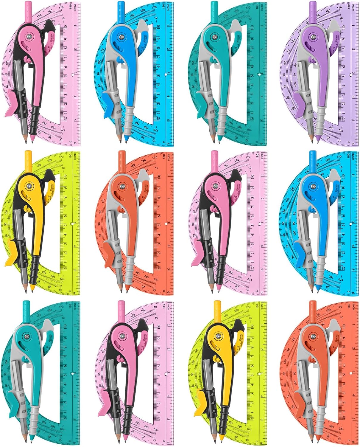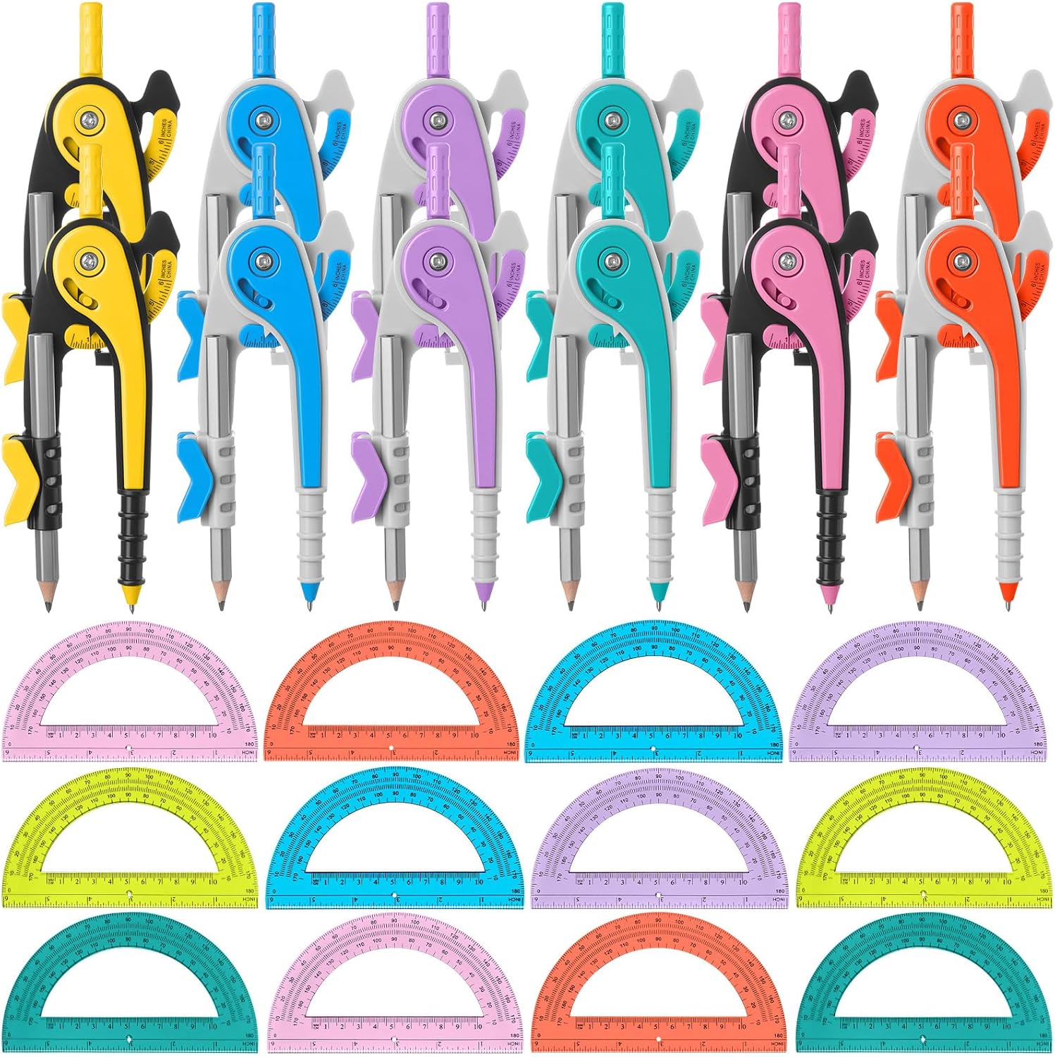 • 12 Compass and Protractor Set: Compasses and protractors are suitable for drawing circles and measuring angles, including six colors of red, pink, yellow, blue, green, and purple, with bright color combinations, the compass comes with round corner design on compass needle, safe and reliable to use without worrying about scratching, suitable for students, teachers, engineers, designers, artists, etc