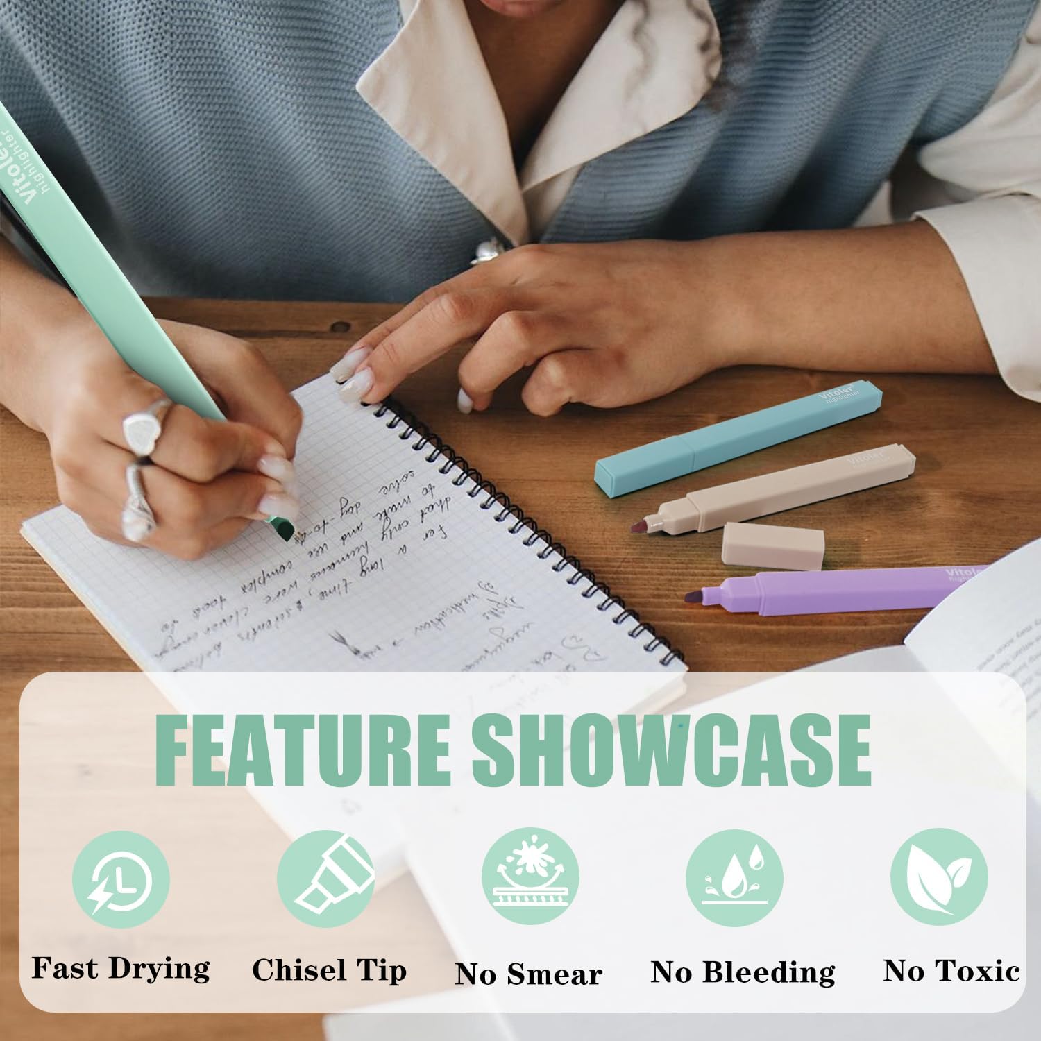 • Easy to Hold:Our highlighter is designed with square shape,it’s comfortable and easy to grip without a sore hand, and square pen body makes it non-rolling, not easy to roll off the table.