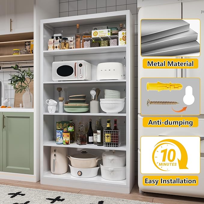 • Sturdy & Reliable Metal Living Room Shelf: Unlike small narrow bookcase particle board, this book shelf white for bedroom provides superior strength, durability, and a long lifespan. Rustic bookshelf can hold more books and includes anti dumping device for added stability
