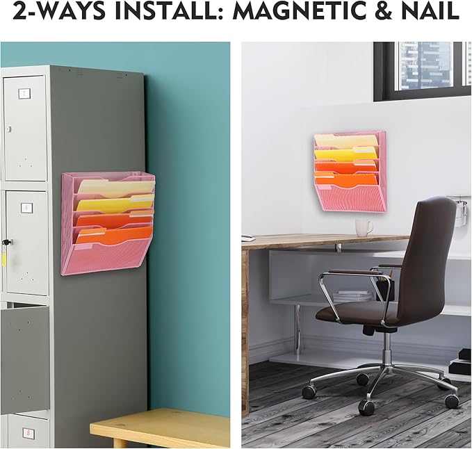 • 5 Pockets: The wall file organizer comes with mounting screws that can be easily mounted on the wall