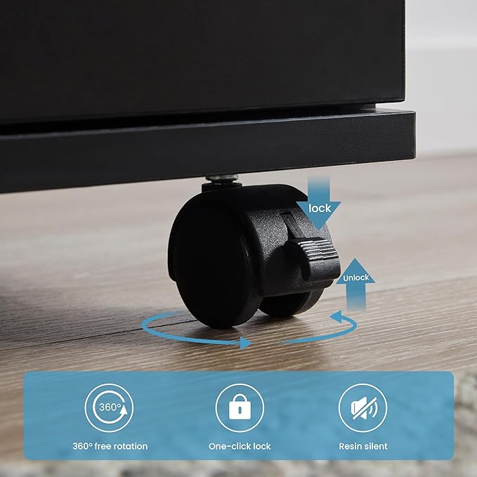 • Smooth-Rolling Casters for Mobility – Equipped with four durable casters (two lockable) for easy movement and stability, allowing you to reposition the cabinet effortlessly as needed.
