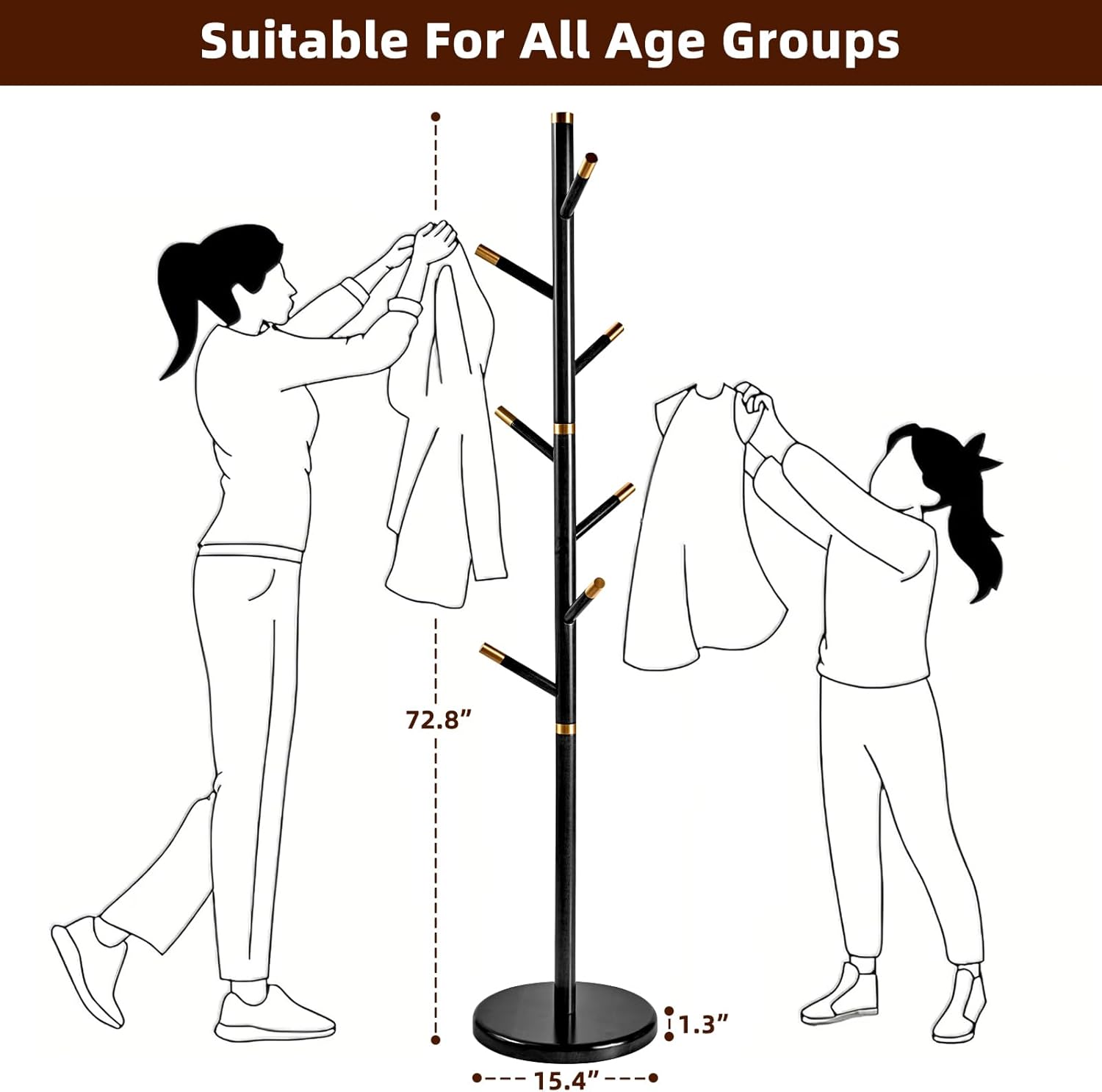 • 【CREATIVE AND STURDY】 The wood coat rack freestanding boasts 8 sturdy branches, each capable of holding 11 lbs, totaling a max capacity of 120 lbs. Its creative design combines beauty with functionality.