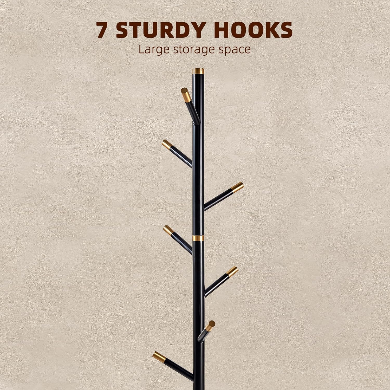 Uniclinens Coat Rack Freestanding Solid Wood Coat Tree Standing with 7 Hooks, Coat Rack Stand Creative Tree Branch-look (Black)