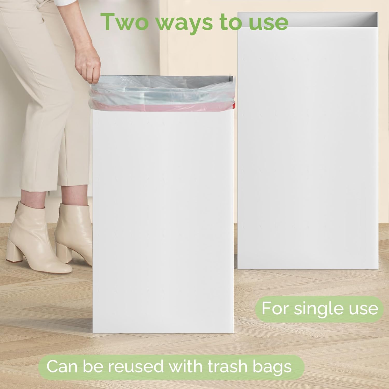 • Disposable and Reusable: Our trash can is designed for flexibility—it can be used as a disposable item or paired with trash bags for reusable functionality, fitting various usage scenarios.