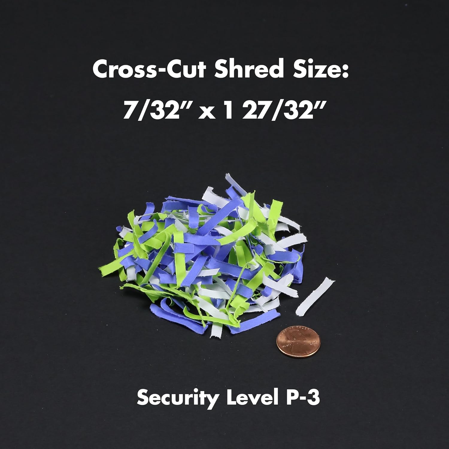 • Shreds paper and credit cards into small pieces (7/32 by 1-27/32 inches), security level P-3
