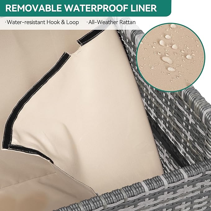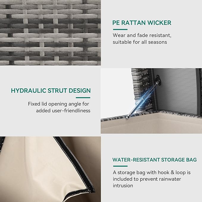 • All-weather Material- The powder-coated steel frame is covered in all-weather hand-woven wicker to achieve easy cleaning as well as great resistance to sun, rain, heat, cold, cracking, sagging or fading; Widened waterproof lid provides better storage protection; Front handle facilitates easy opening of this outdoor wicker storage.