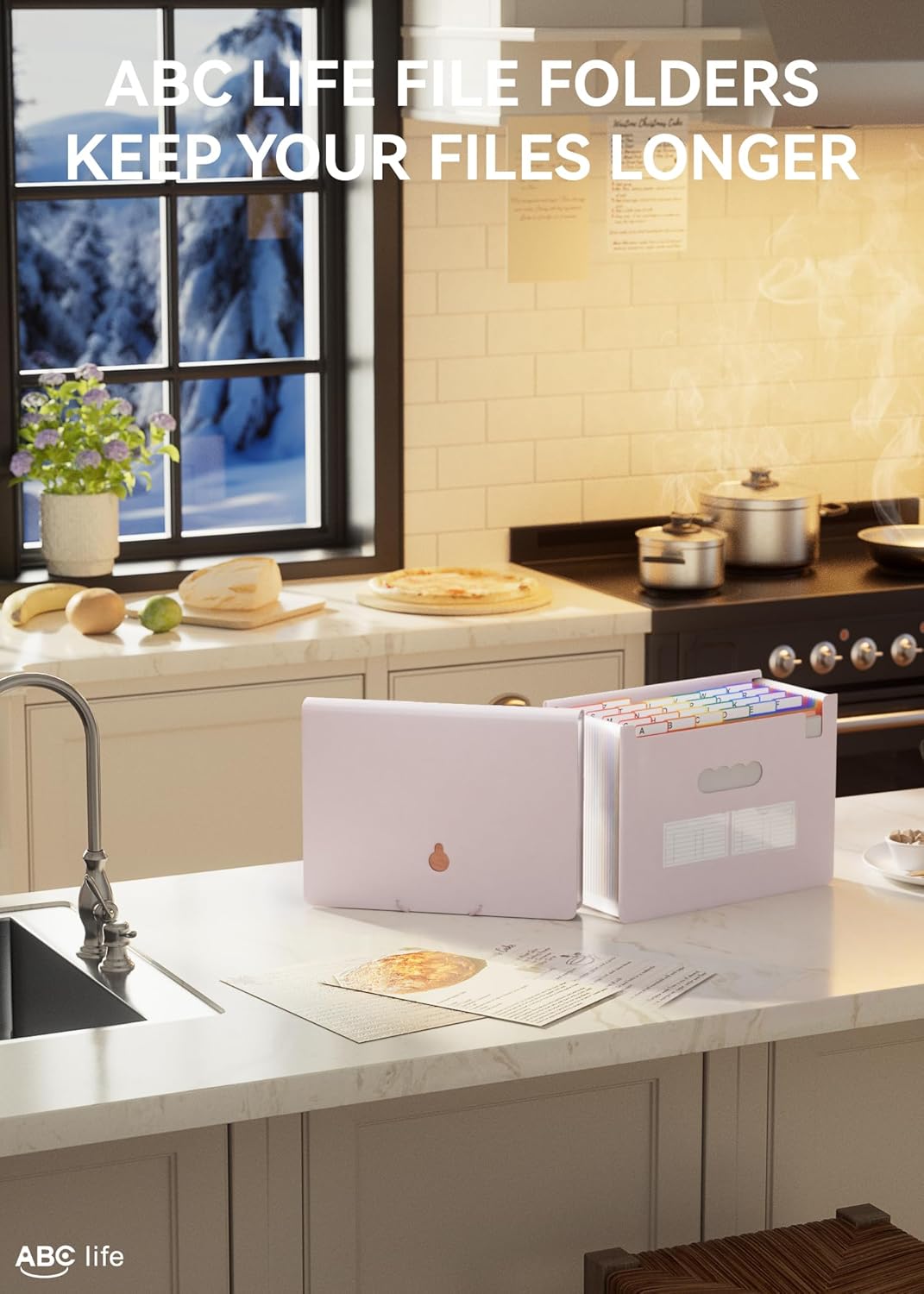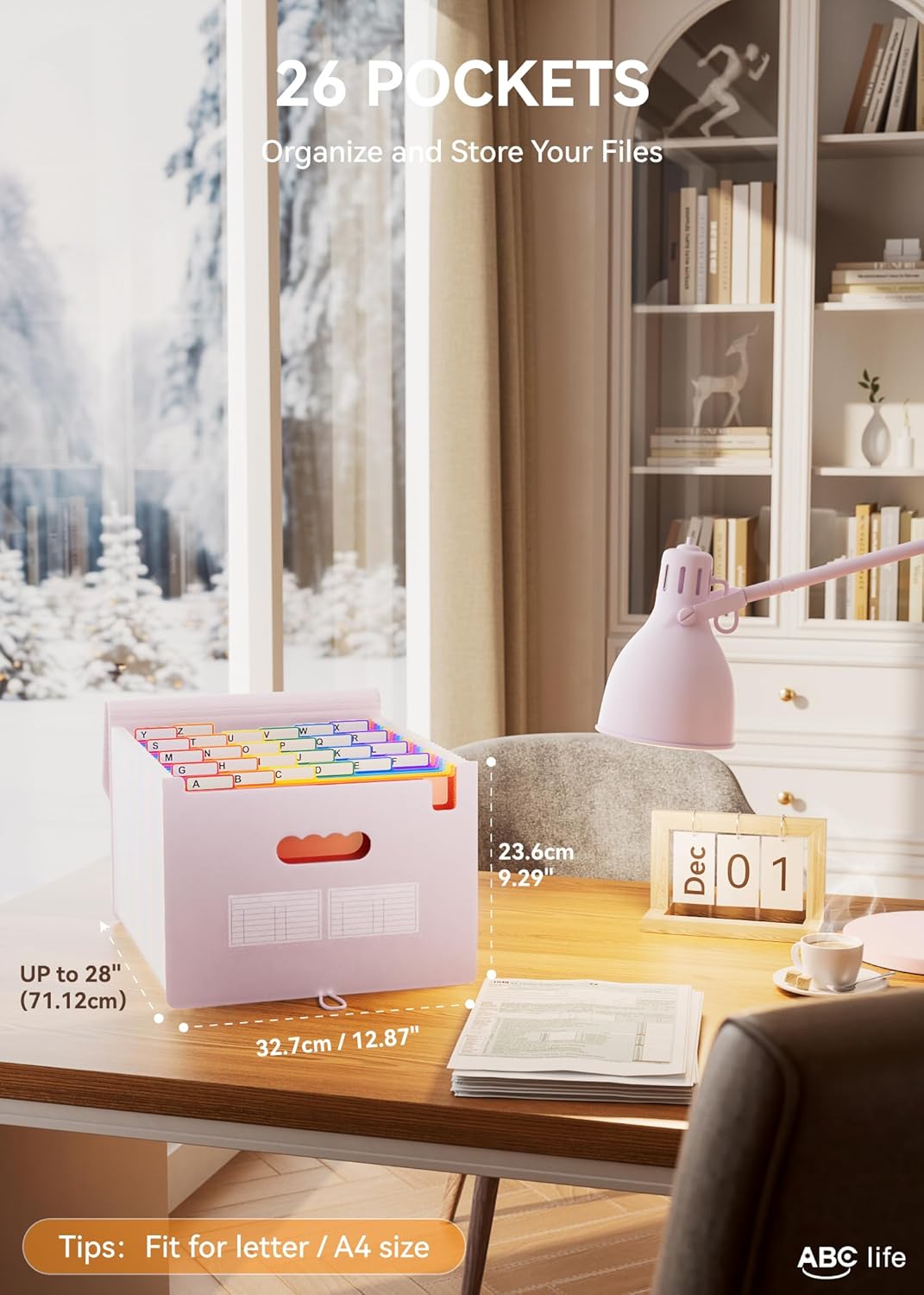 • 【26 Expanding File Folder】ABC life pockets accordian file organizer suitable for filing tax and storing important family documents. Product size is 13 "x 9.4"x 28", top and bottom are both expandable, For letter/A4 size files.