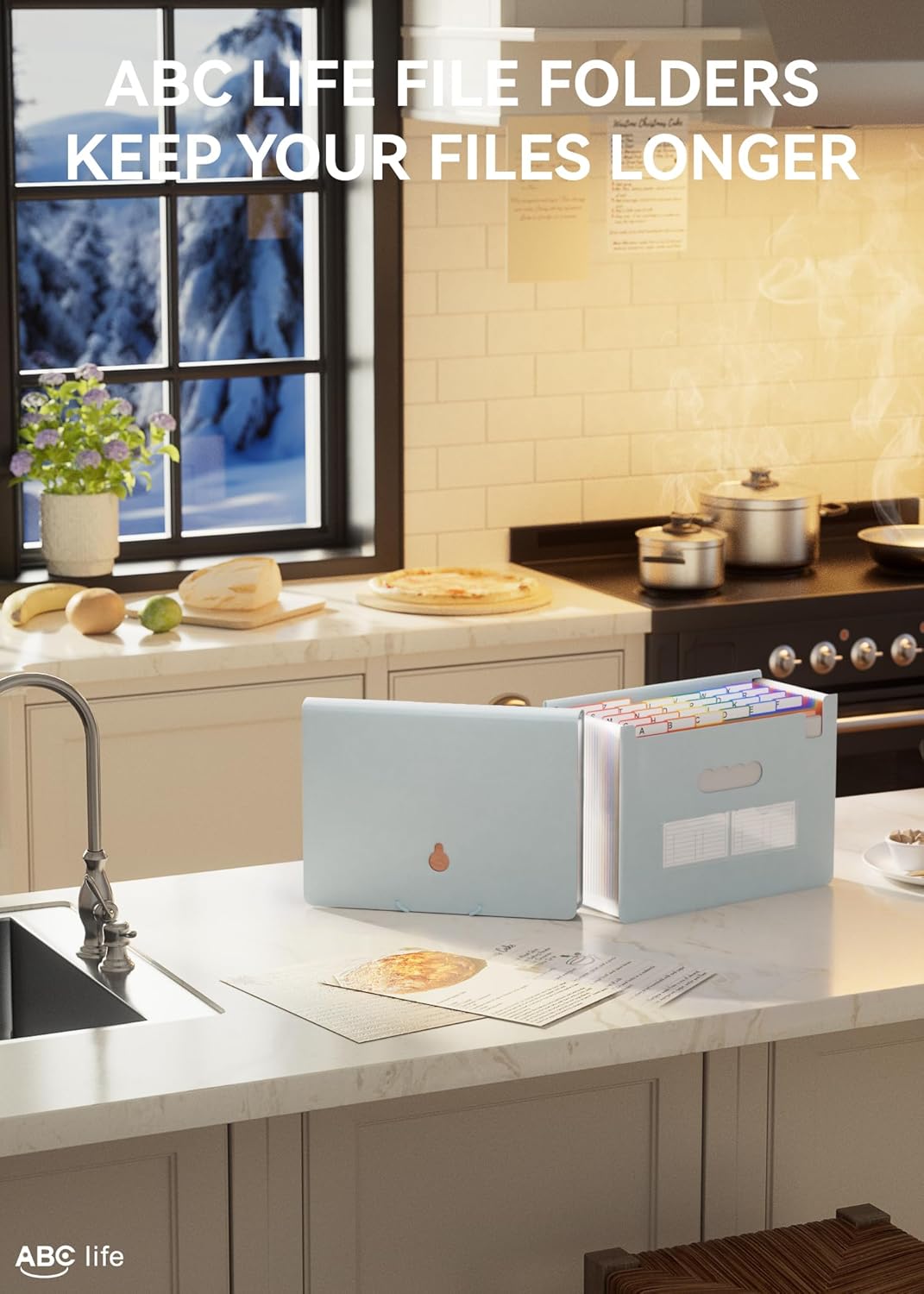 • 【26 Expanding File Folder】ABC life pockets accordian file organizer suitable for filing tax and storing important family documents. Product size is 13 "x 9.4"x 28", top and bottom are both expandable, For letter/A4 size files.