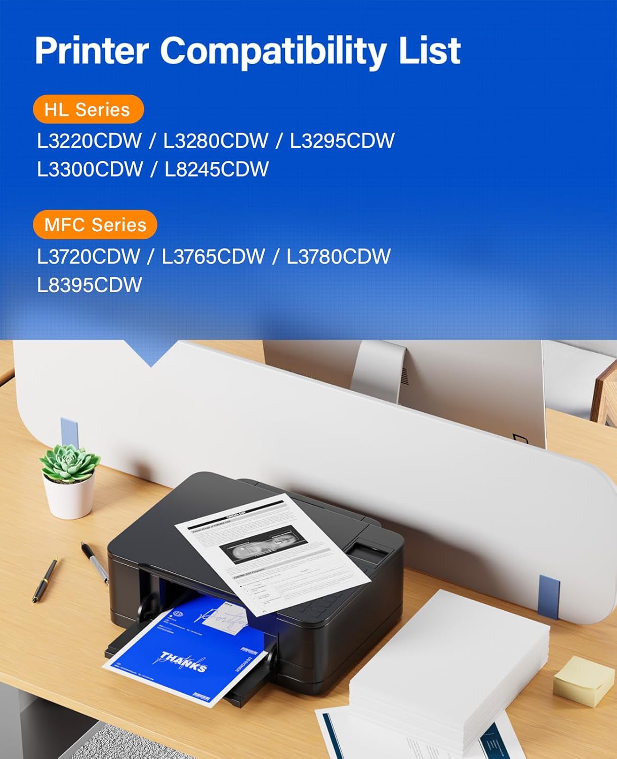 • Compatible Devices : Compatible for Brother HL-L3220CDW, HL-L3280CDW HL-L3295CDW, HL-L3300CDW, HL-L8245CDW MFC-L3720CDW, MFC-L3765CDW MFC-L3780CDW, MFC-L8395CDW Laser Printer Compatible for Brother HL-L3220CDW, HL-L3280CDW HL-L3295CDW, HL-L3300CDW, HL-L8245CDW MFC-L3720CDW, MFC-L3765CDW MFC-L3780CDW, MFC-L8395CDW Laser Printer