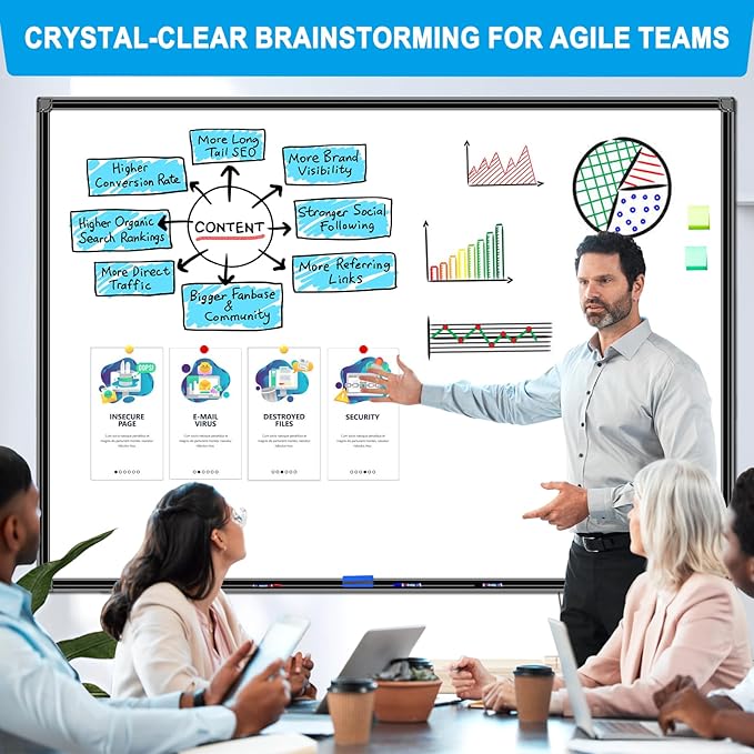 • ✔ Premium Durability – Unlike flimsy cardboard-core whiteboards, our sturdy wooden core resists warping, dents, and creases for long-lasting use. Black aluminum frame with ABS corner guards prevents dings.