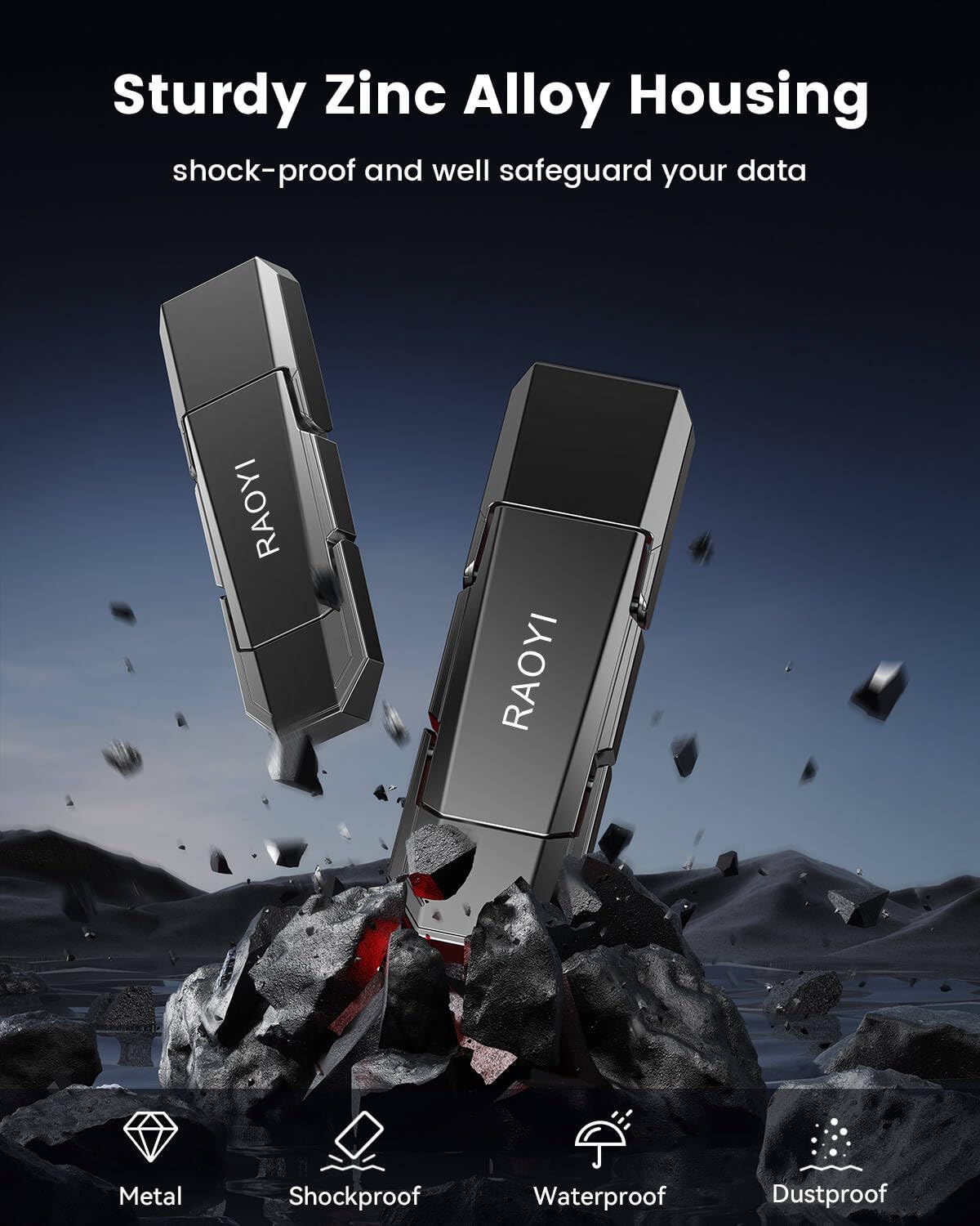 • Plug and Play: This high speed USB drive features huge capacities to offer you plenty of storage space; Just plug in and quickly free up space. It supports Windows, Linux, Android, and Mac OS, and also backward compatible with USB 3.1, USB 3.0, USB 2.0. Default format is exFAT.(Not compatible with lightning port.)