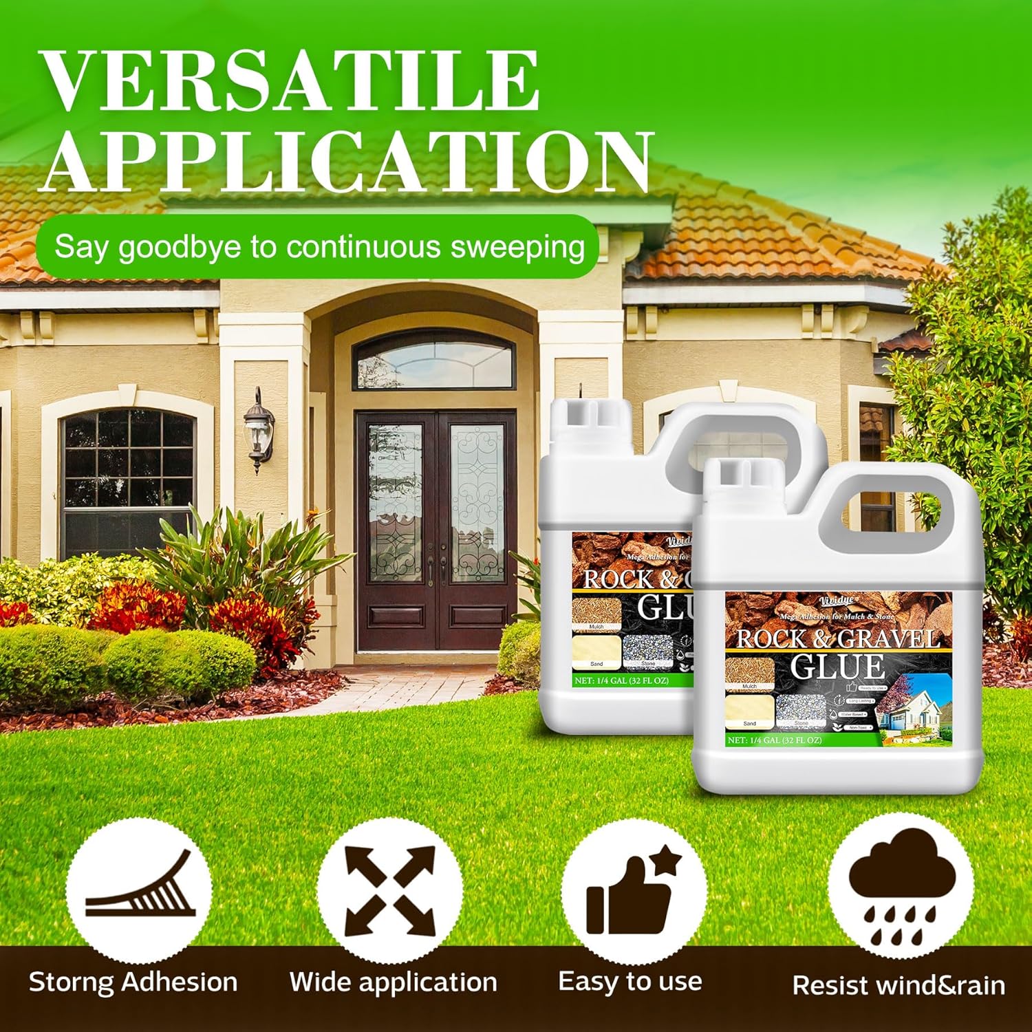 • Easily holds application - This ready-to-use adhesive simplifies landscape projects. For heavy materials (pea gravel or rock), our gravel binder can be used directly. For lightweight mulch (straw or leaves), mix 10:1 with water (do not exceed 1 part water), shake, and apply via sprayer or watering can. Apply 2-3 thin coats on dry surfaces for optimal hold. It’s perfect for gardens, driveways and walkways, securing rubber mulch and gravel with 12-24 month hold - ideal Landscaping Glue.