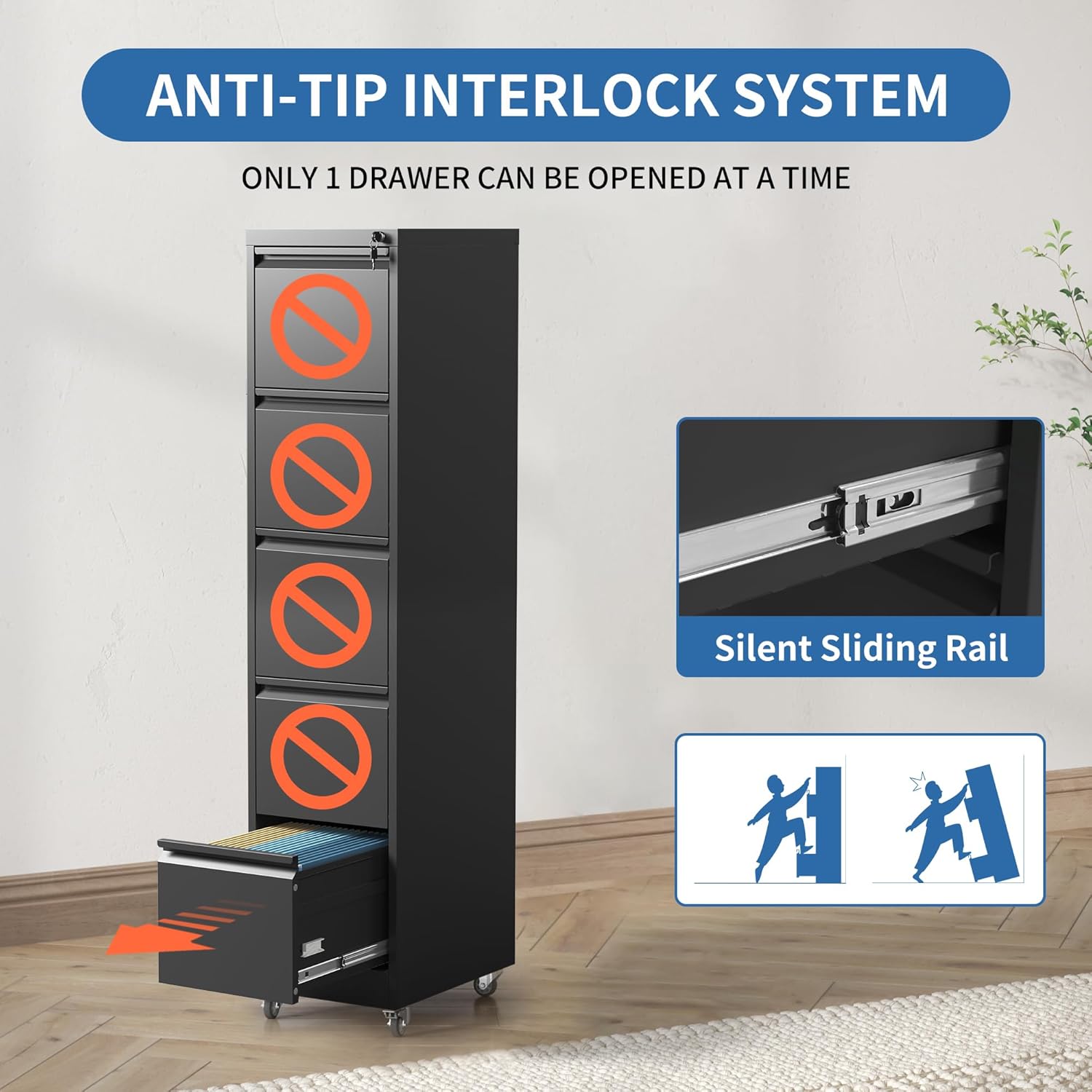 • 【Secure & Anti-tilt Design】Our office filing cabinets with 5 drawer feature a locking mechanism and anti-tip feature. When one drawer is opened, the interlocking drawer system prevents the other drawers from opening, preventing tip-overs and increasing safety.