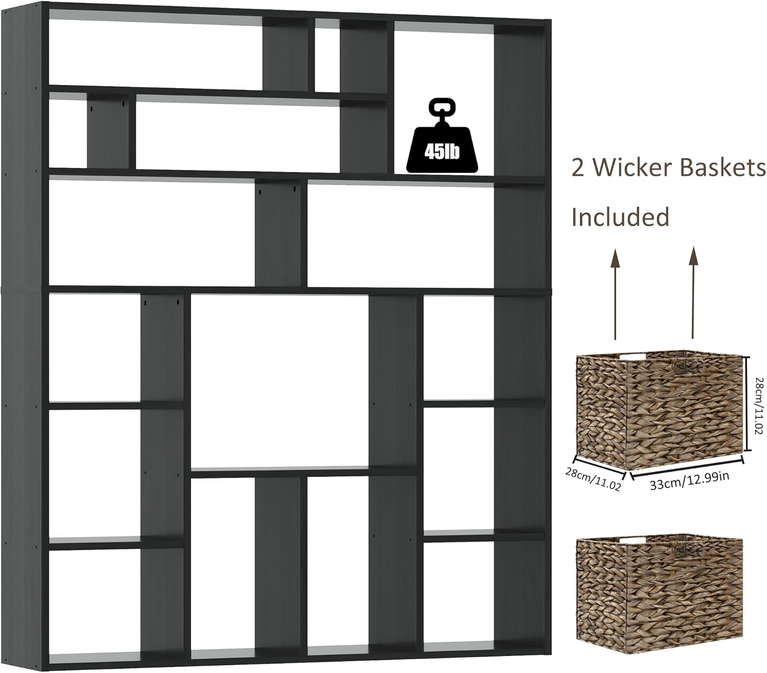 • 【Spacious Organization】71"H x 55"W x 11.8'' D dimensions for this large storage bookshelf. Maximizes vertical space with 16 versatile open compartments in graduated sizes. Effortlessly accommodates books, decorative objects, storage bins, and awkwardly shaped items for whole-home storage solutions.