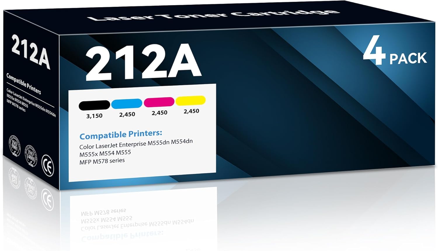 • 4-pack 212A toner cartridge set includes black toner (W2120A), cyan (W2121A), yellow (W2122A), and magenta (W2123A) cartridges