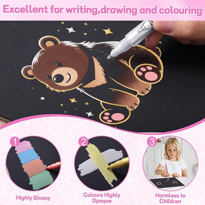 • 【Perfect Gift for Creators】Premium metallic paint markers packed in a sleek set—ideal for birthdays, Christmas, or art students. Elevate rock painting, card making, or DIY crafts with professional-grade tools