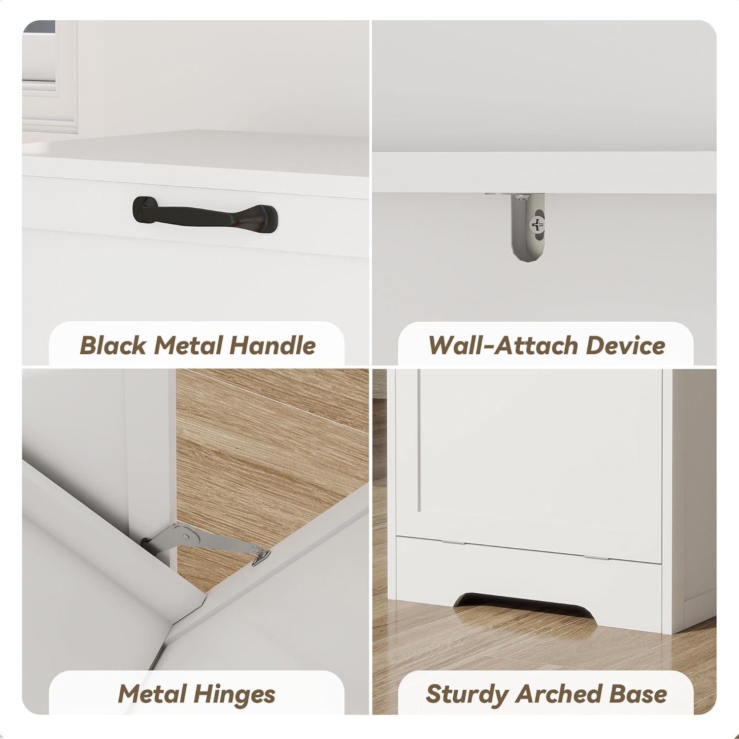 • Practical Garbage Bin: This laundry room cabinets a built-in bin, unlocking endless storage options—use regular trash bags, reusable containers, or even dividers to sort recyclables and cleaning supplies. Its flip-top door opens wide, making loading and unloading effortless. It adapts to evolving needs, an ideal choice for families, pet owners, or anyone seeking flexible storage.