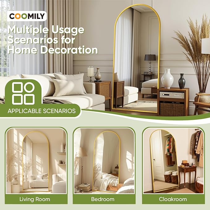 Full-Length Floor Mirror with Stand, 68"x26" Arched Style Full Body Standing Mirror for Bedroom, Living Room, Gym, Dorm - Shatter-Resistant & Easy Assembly, Gold
