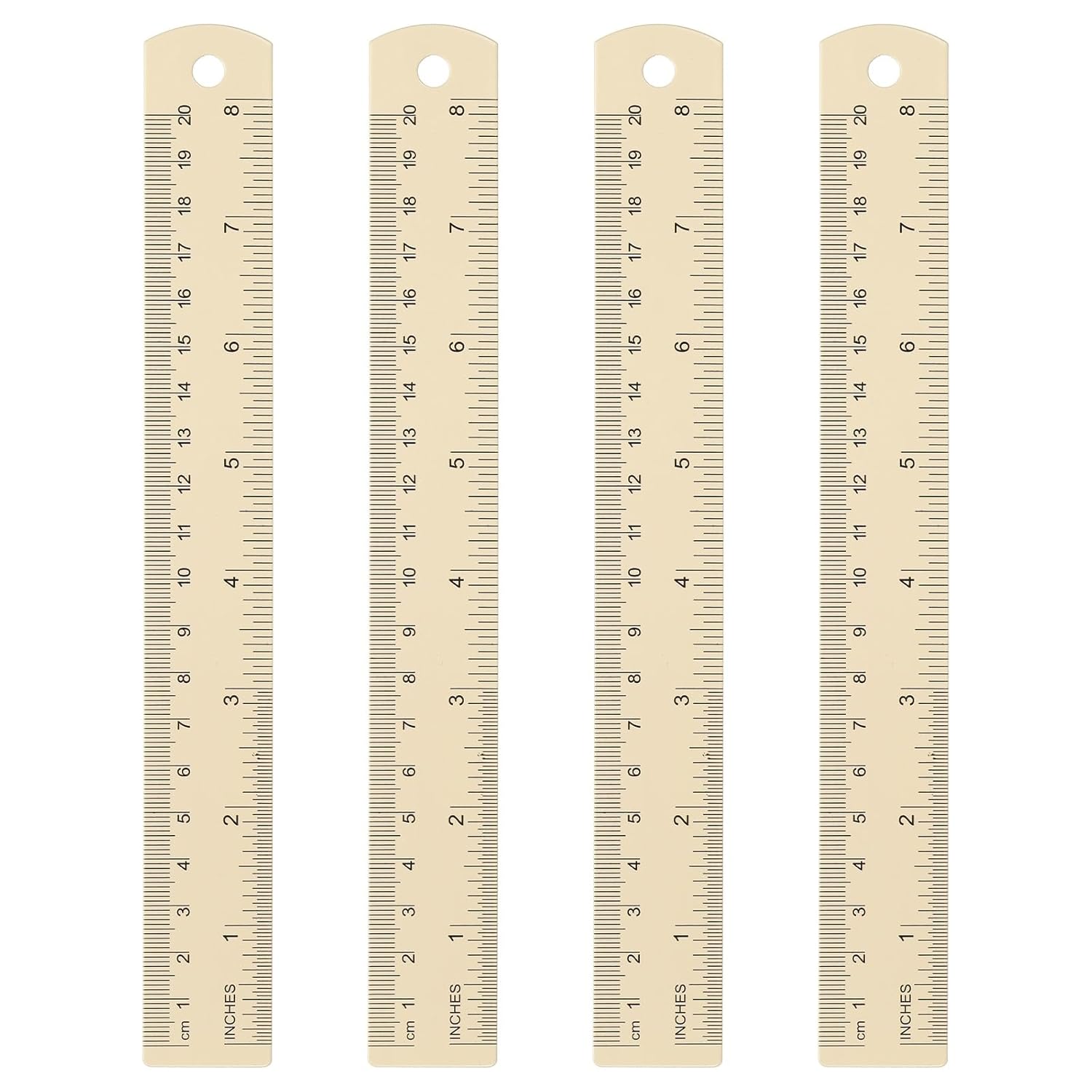 HARFINGTON 4pcs Metal Straight Ruler 20cm Metric SAE Aluminum Alloy Measuring Rulers Scale Tool with Hole for Measure Study Reading Classroom Office, Beige