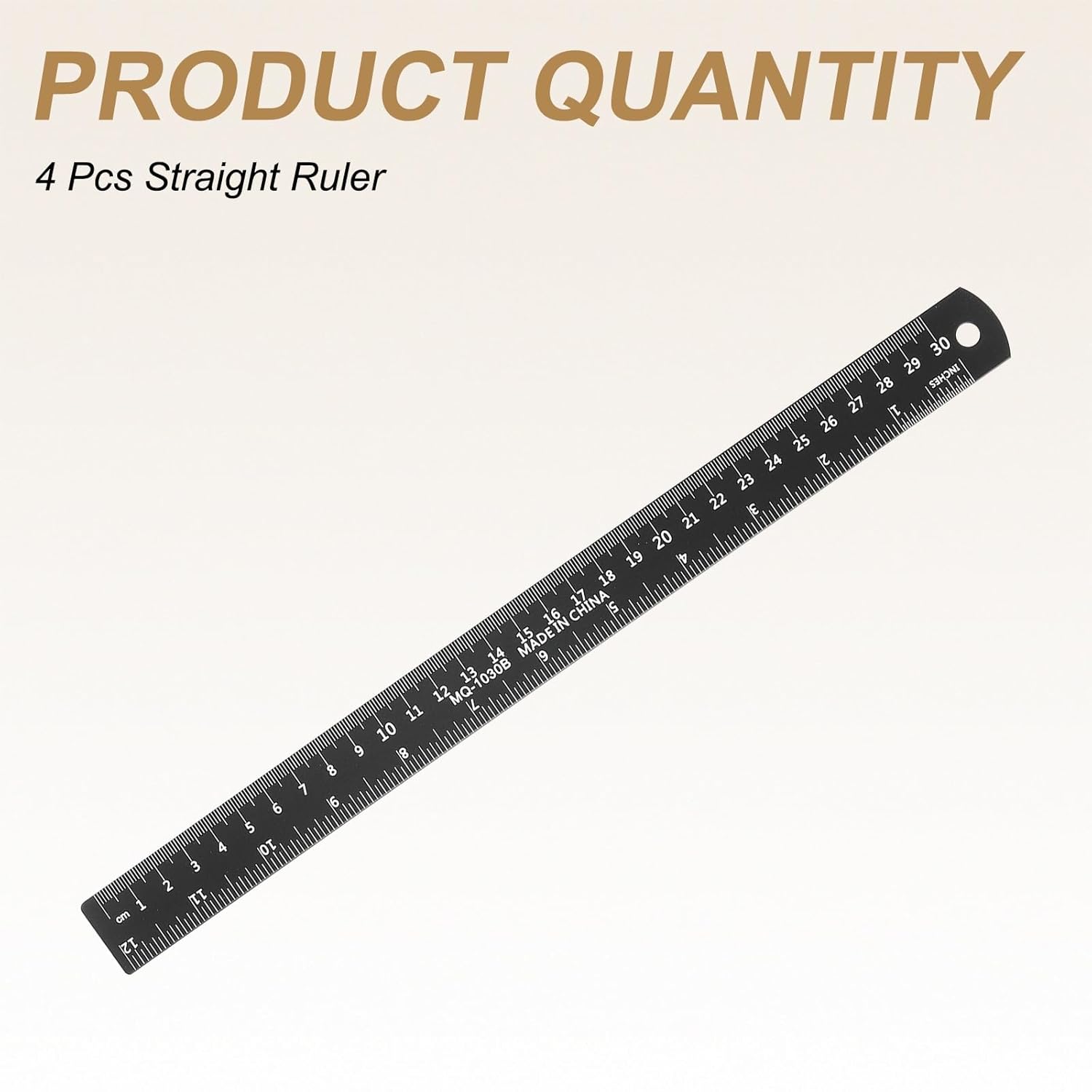 HARFINGTON 4pcs Metal Straight Ruler 30cm Metric SAE Aluminum Alloy Measuring Rulers Scale Tool with Hole for Measure Study Reading Classroom Office, Black
