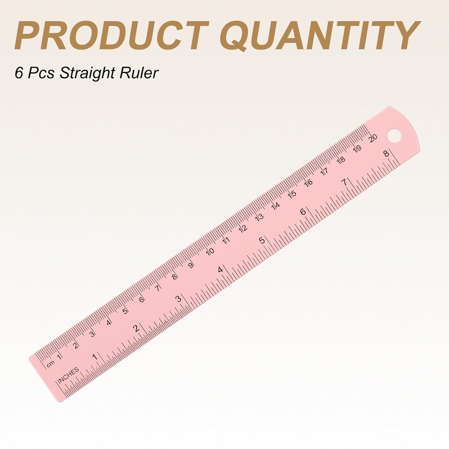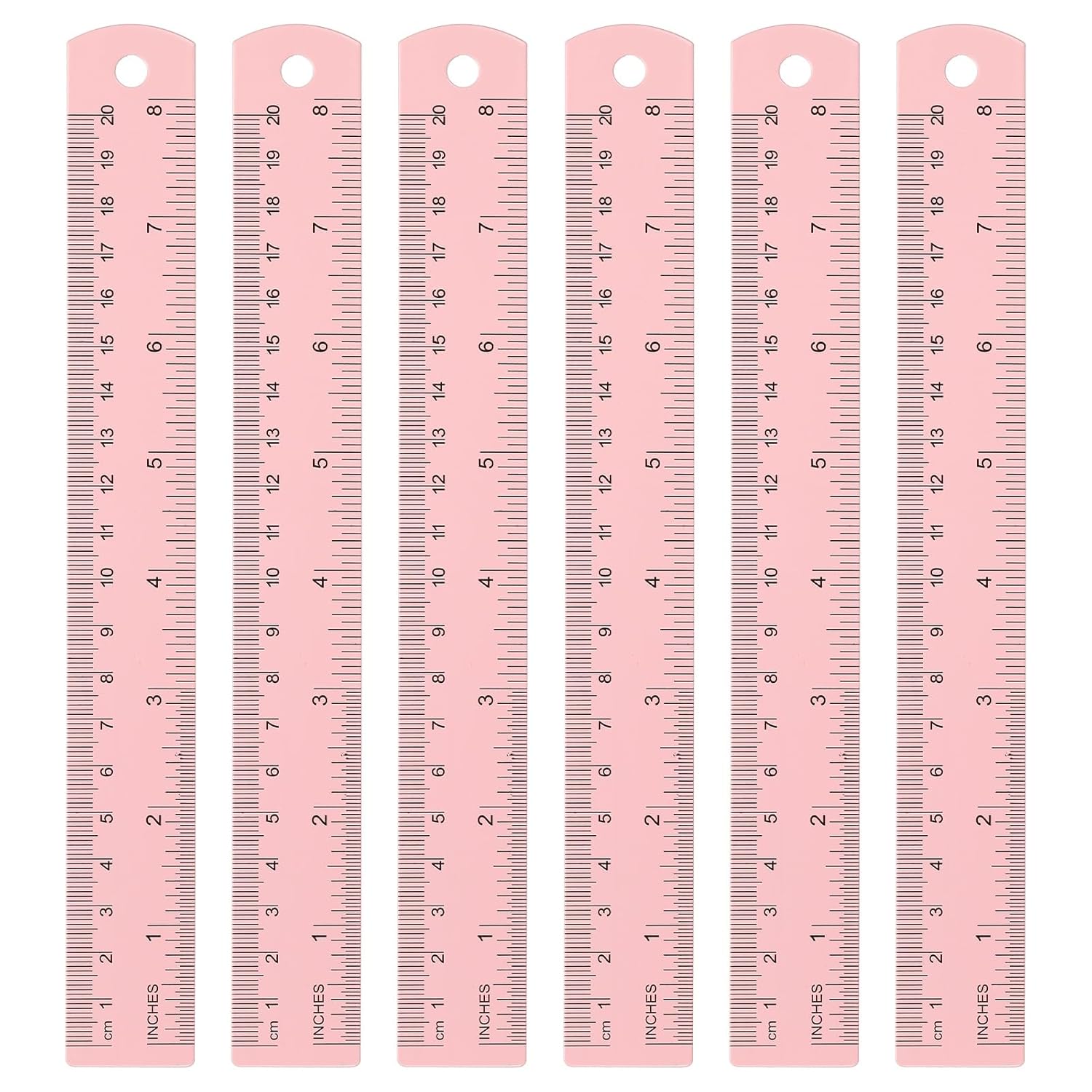 HARFINGTON 6pcs Metal Straight Ruler 20cm Metric SAE Aluminum Alloy Measuring Rulers Scale Tool with Hole for Measure Study Reading Classroom Office, Pink