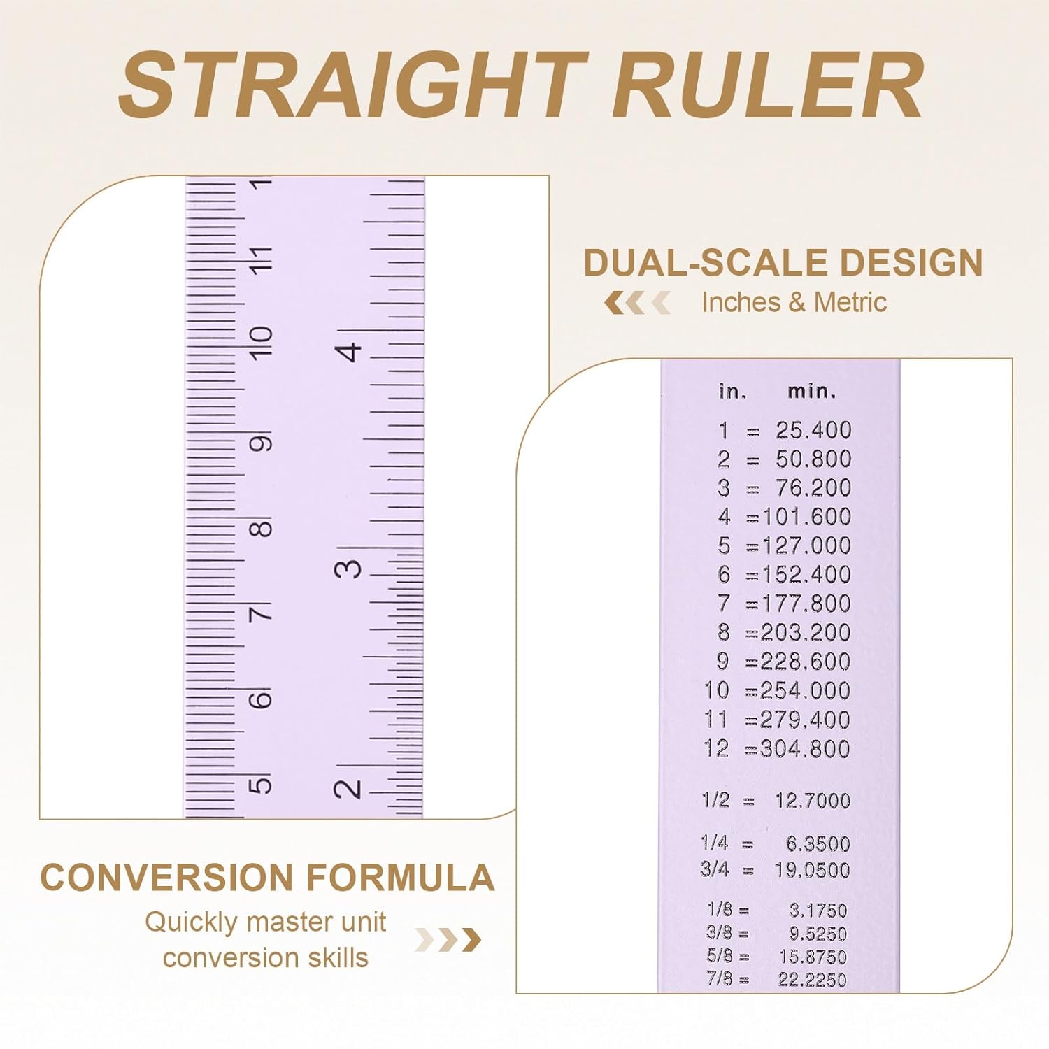 • Feature - The ruler features ink printing technology on its surface, ensuring that the scale is clear and sharp, remaining non-fading and non-blurring even after long-term use. It has a dual-scale design, and the back is carefully printed with a complete set of conversion formula for metric and SAE units, allowing beginners to quickly master unit conversion skills. Additionally, it includes a hanging hole design for convenient storage and accessibility.