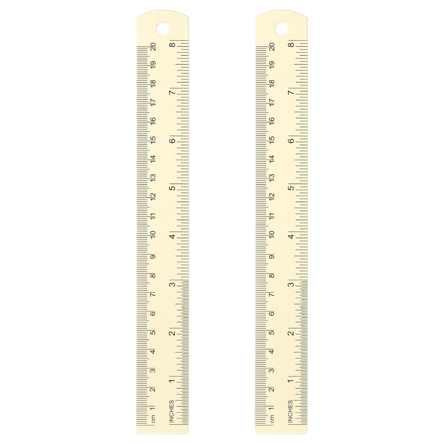 HARFINGTON 2pcs Metal Straight Ruler 20cm Metric SAE Aluminum Alloy Measuring Rulers Scale Tool with Hole for Measure Study Reading Classroom Office, White