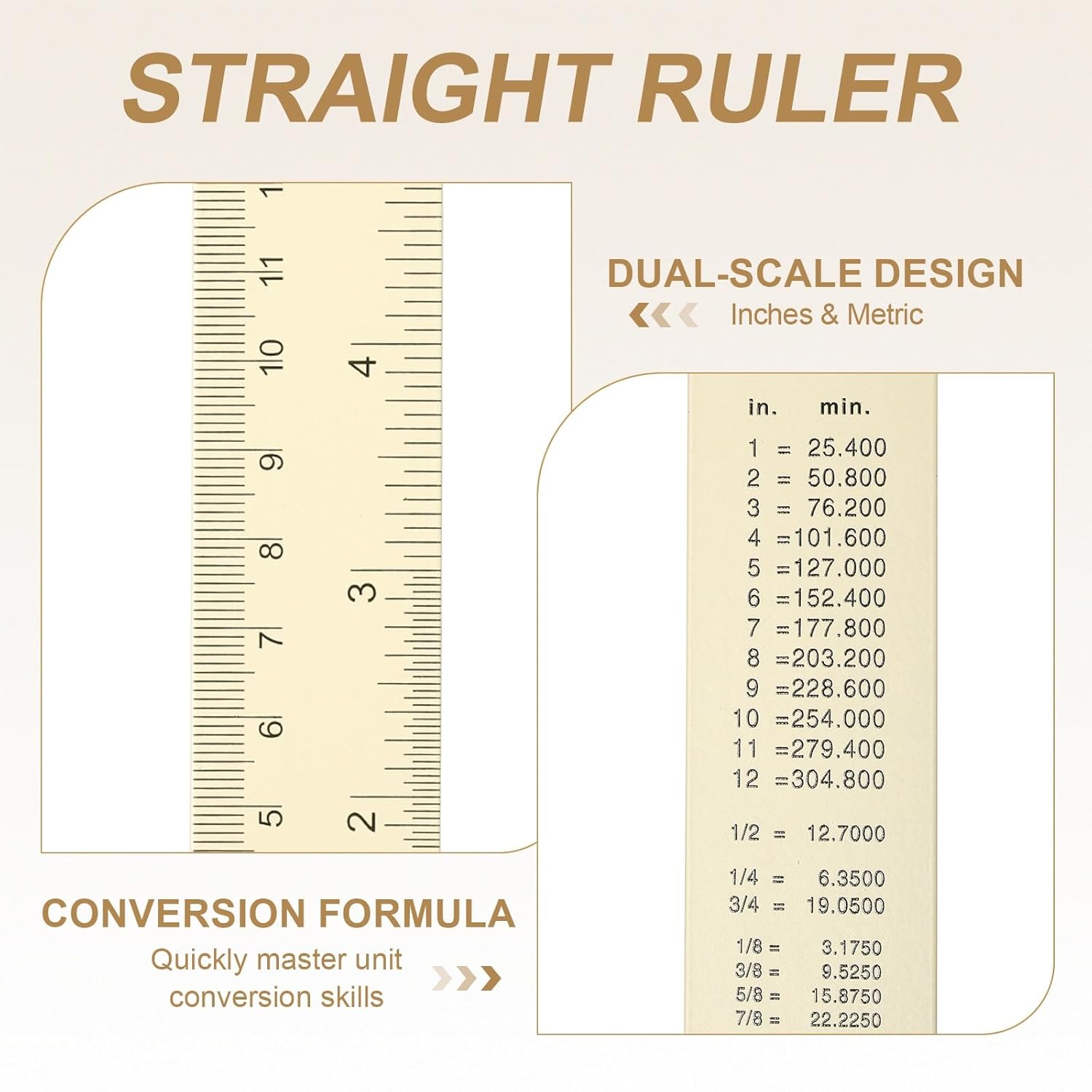 • Feature - The ruler features ink printing technology on its surface, ensuring that the scale is clear and sharp, remaining non-fading and non-blurring even after long-term use. It has a dual-scale design, and the back is carefully printed with a complete set of conversion formula for metric and SAE units, allowing beginners to quickly master unit conversion skills. Additionally, it includes a hanging hole design for convenient storage and accessibility.