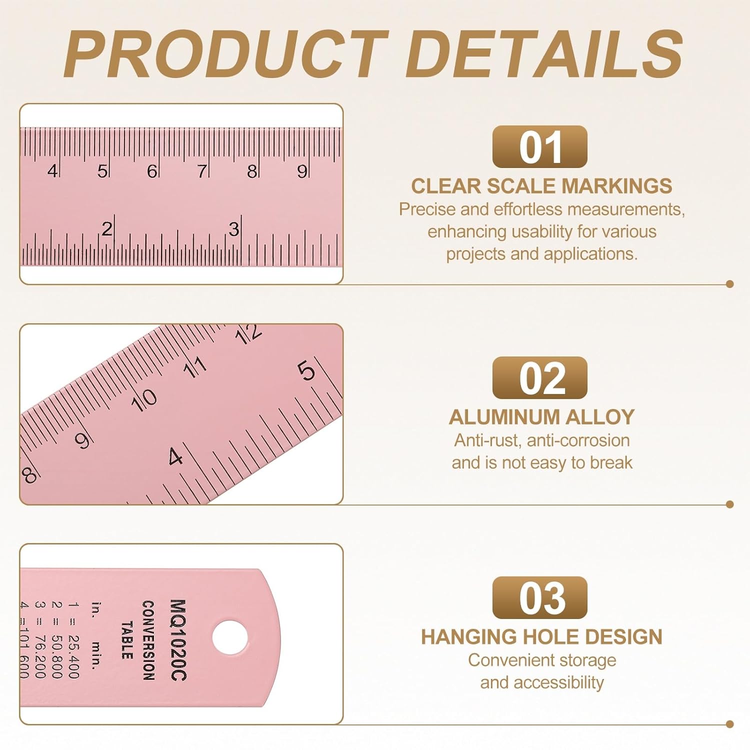 • Feature - The ruler features ink printing technology on its surface, ensuring that the scale is clear and sharp, remaining non-fading and non-blurring even after long-term use. It has a dual-scale design, and the back is carefully printed with a complete set of conversion formula for metric and SAE units, allowing beginners to quickly master unit conversion skills. Additionally, it includes a hanging hole design for convenient storage and accessibility.
