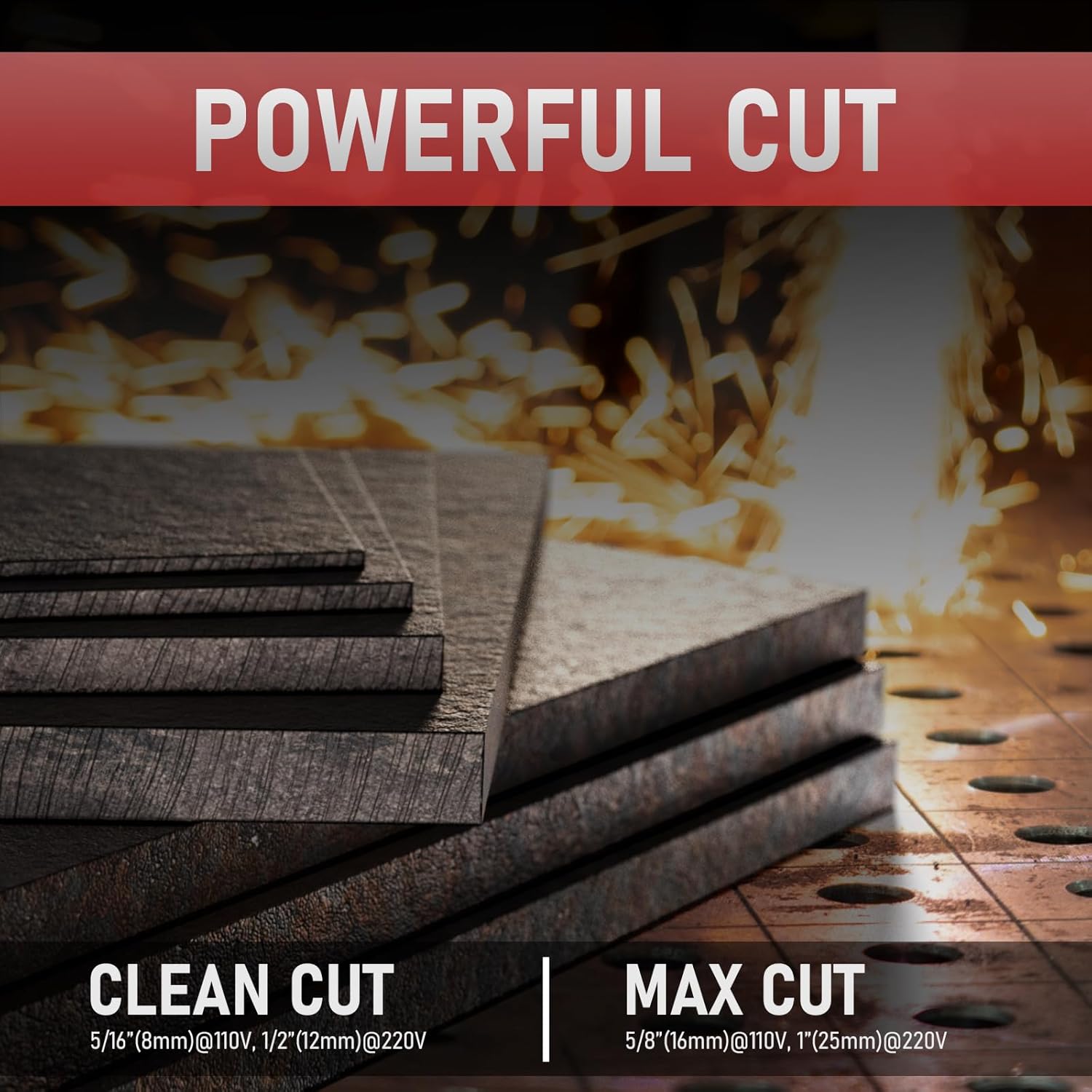 • POWERFUL CUTTING CAPACITY: : Featuring a substantial 60A high current for maximum power, it delivers deeper cutting thickness. Ideal Clean Cut: 5/16"(8mm)@110V, 3/4"(20mm)@220V, Maximum Cut: 1/2"(12mm)@110V, 1"(25mm)@220V. Powered by international leading MCU intelligent digital control technology, it ensures deep, precise, and clean results every time.