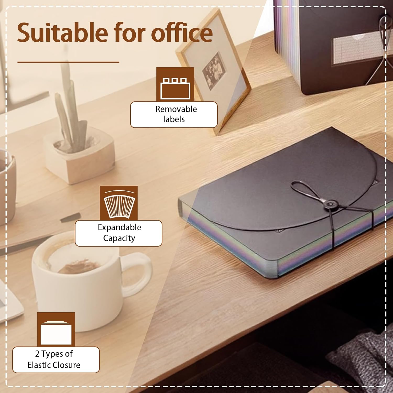 • Portable & stylish: Classic lightweight folder organizer can be Stand on its own on the desk and not easy to tip over. To enhance your file organization, we provide blank labels along with this folder. You can personalize them to suit your requirements, such as labeling sections by month for effortless file retrieval.The dividing sections of the rainbow file folders come in six bright colors, stylish and beautiful. Versatile document organizer for home, office, school, and travel scenarios, compact and light.