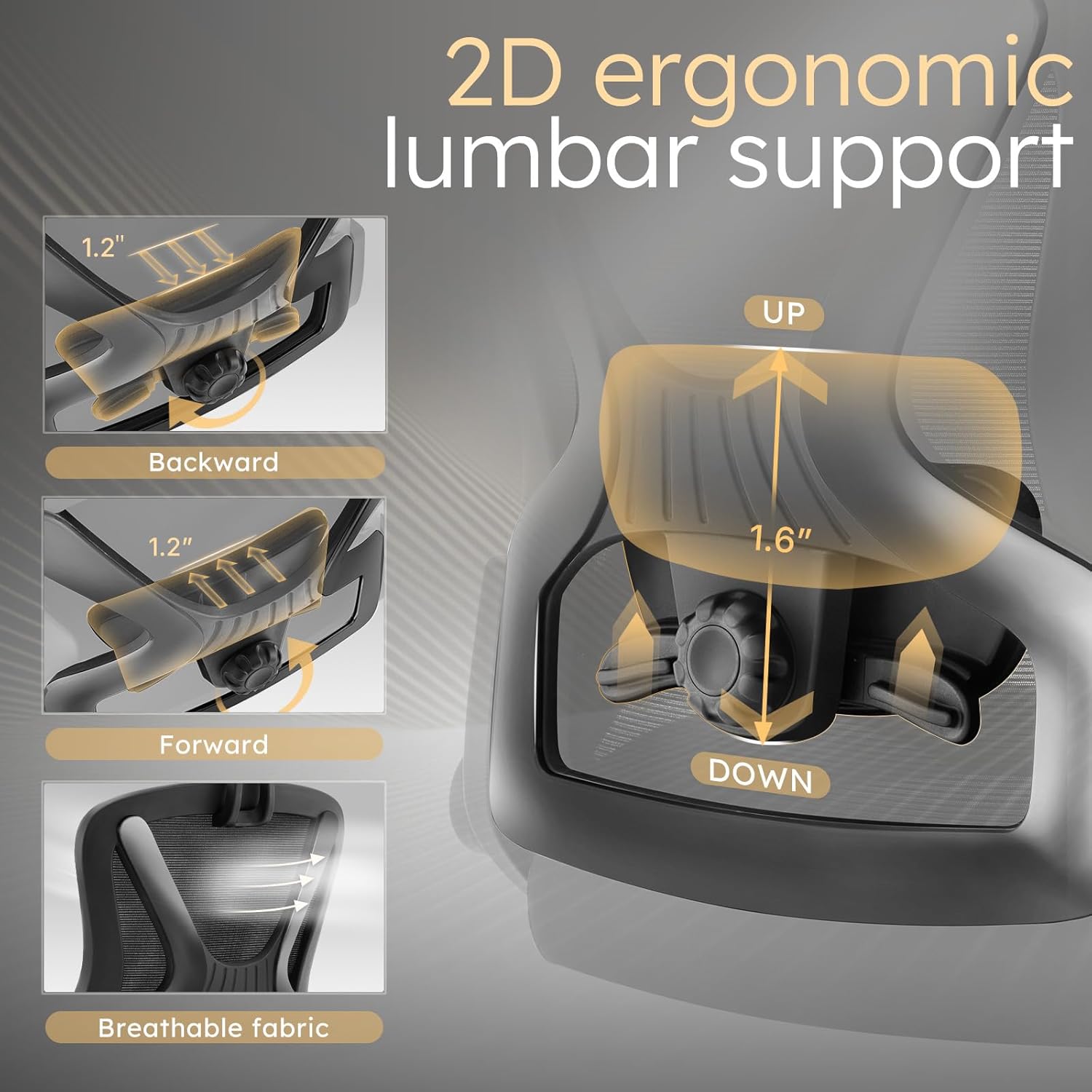 • Strong & Breathable Material: The breathable mesh backrest of this desk chair improves air circulation, keeping you cool and dry all day long. Our mesh executive computer chair comes with adjustable lumbar support to provide optimal back support and relieve lower back pain. Effectively supports your shoulders, back and hips. The adjustable headrest allows you to adjust your sitting position for increased efficiency and comfort during long work hours.